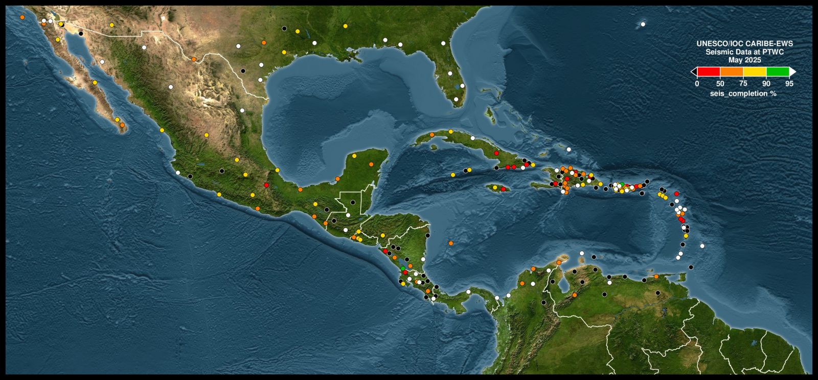 The International Tsunami Information Center Caribbean Office provides the biannual Status of Seismic Data Availability for the Intergovernmental Coordination Group for the Tsunami and Other Coastal Hazards Warning System for the Caribbean Sea and Adjacent Regions (read only Excel files - pdf graphs - jpg maps). Please report any issues or comments to the these reports to Christa.vonH@noaa.gov.