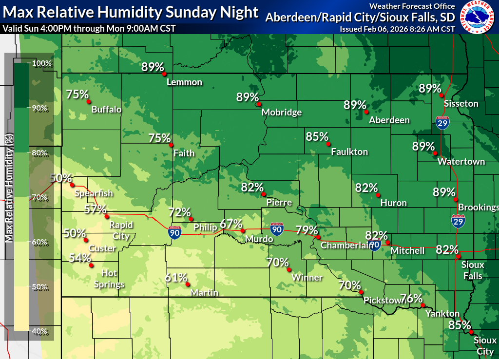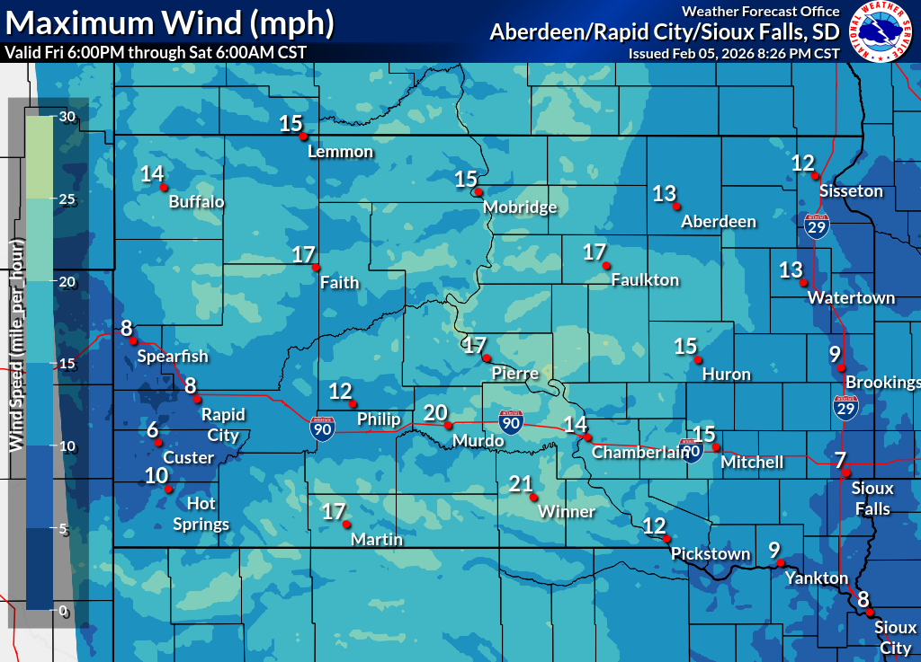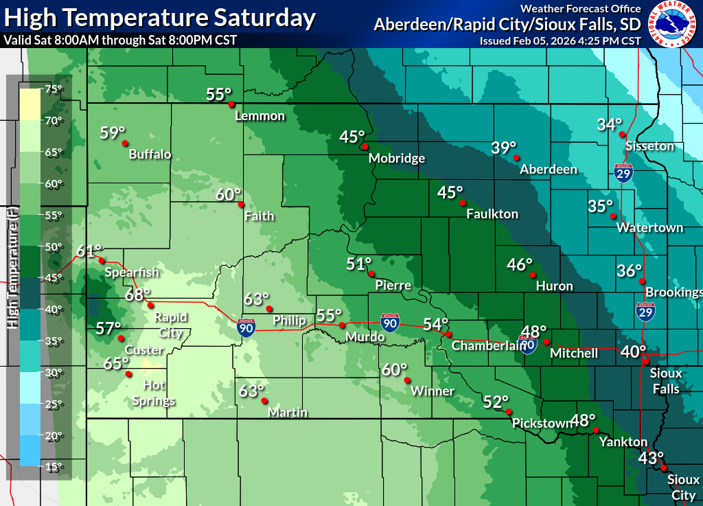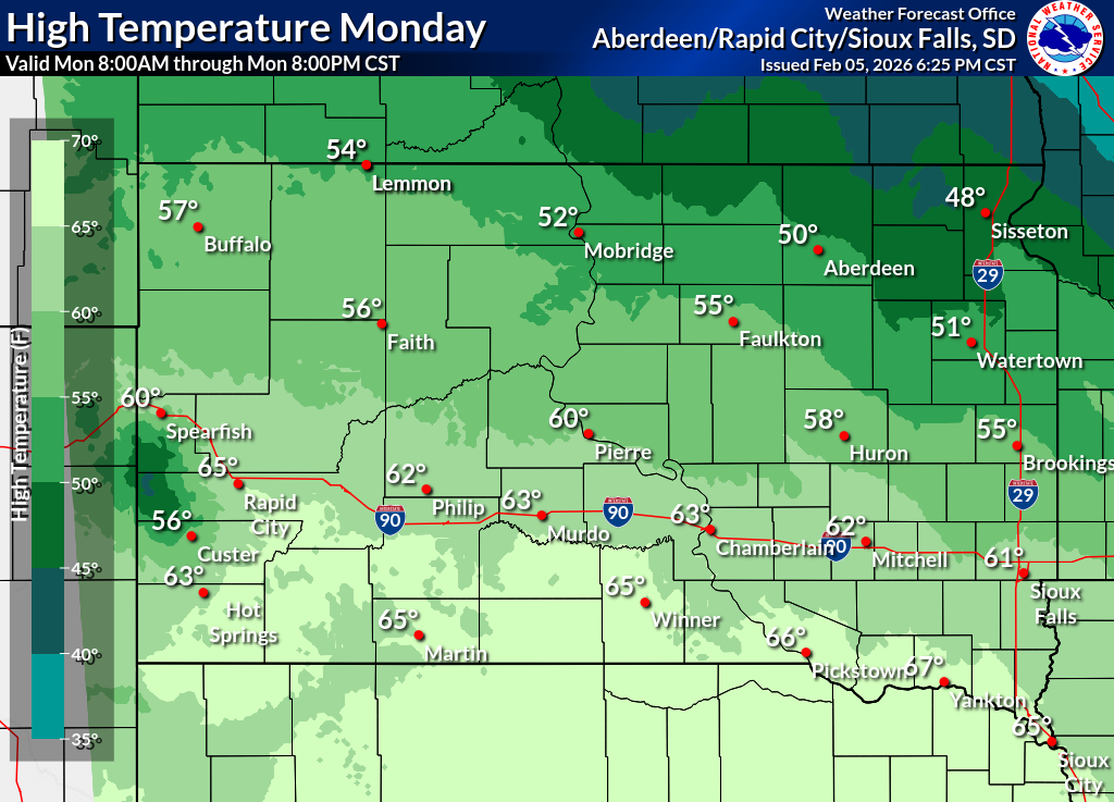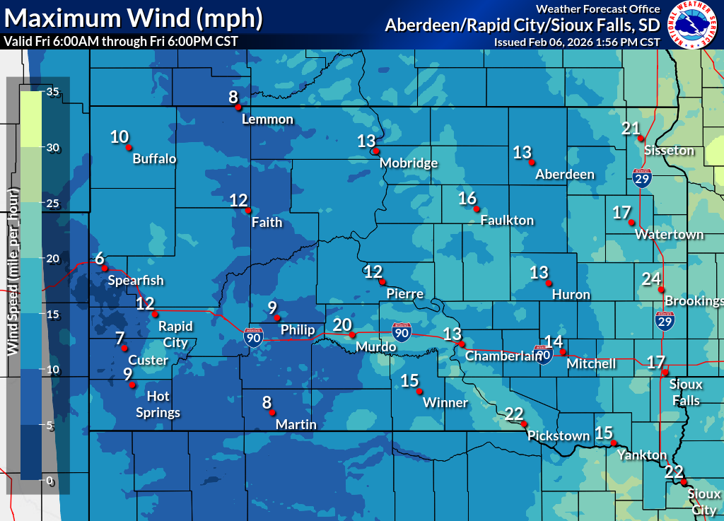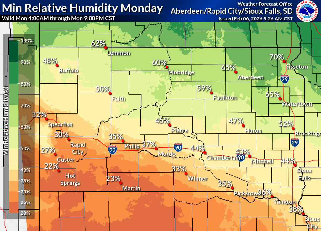 Click on the county for the localized Fire Weather Forecast for central to northeastern South Dakota and west-central Minnesota (or view the entire Fire Weather Forecast) |
