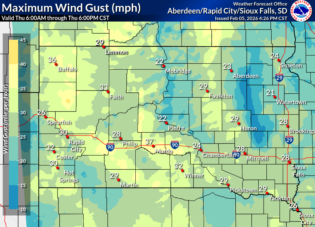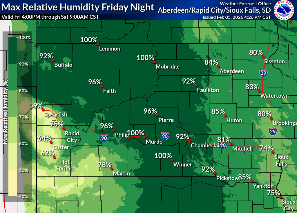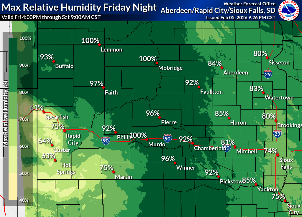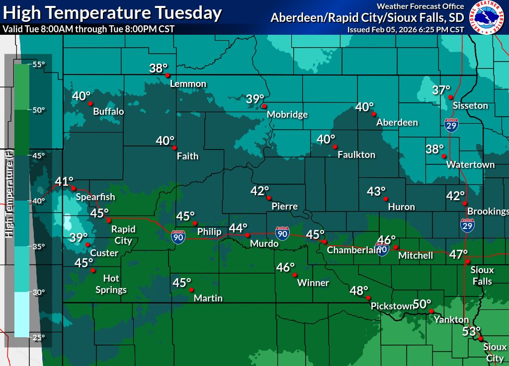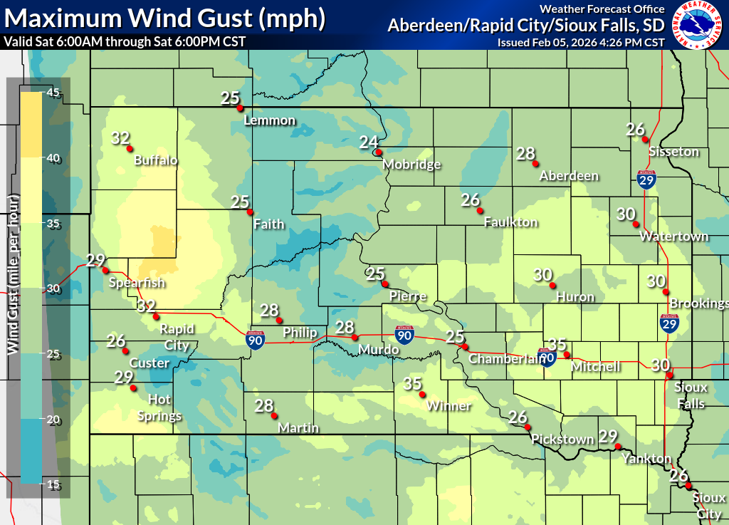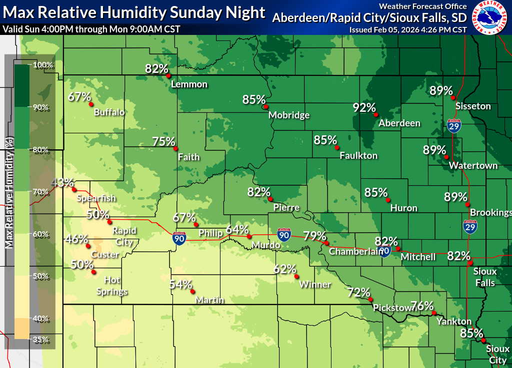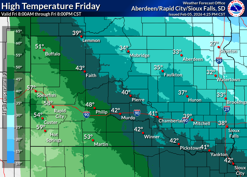 Click on the county for the localized Fire Weather Forecast for central to northeastern South Dakota and west-central Minnesota (or view the entire Fire Weather Forecast) |