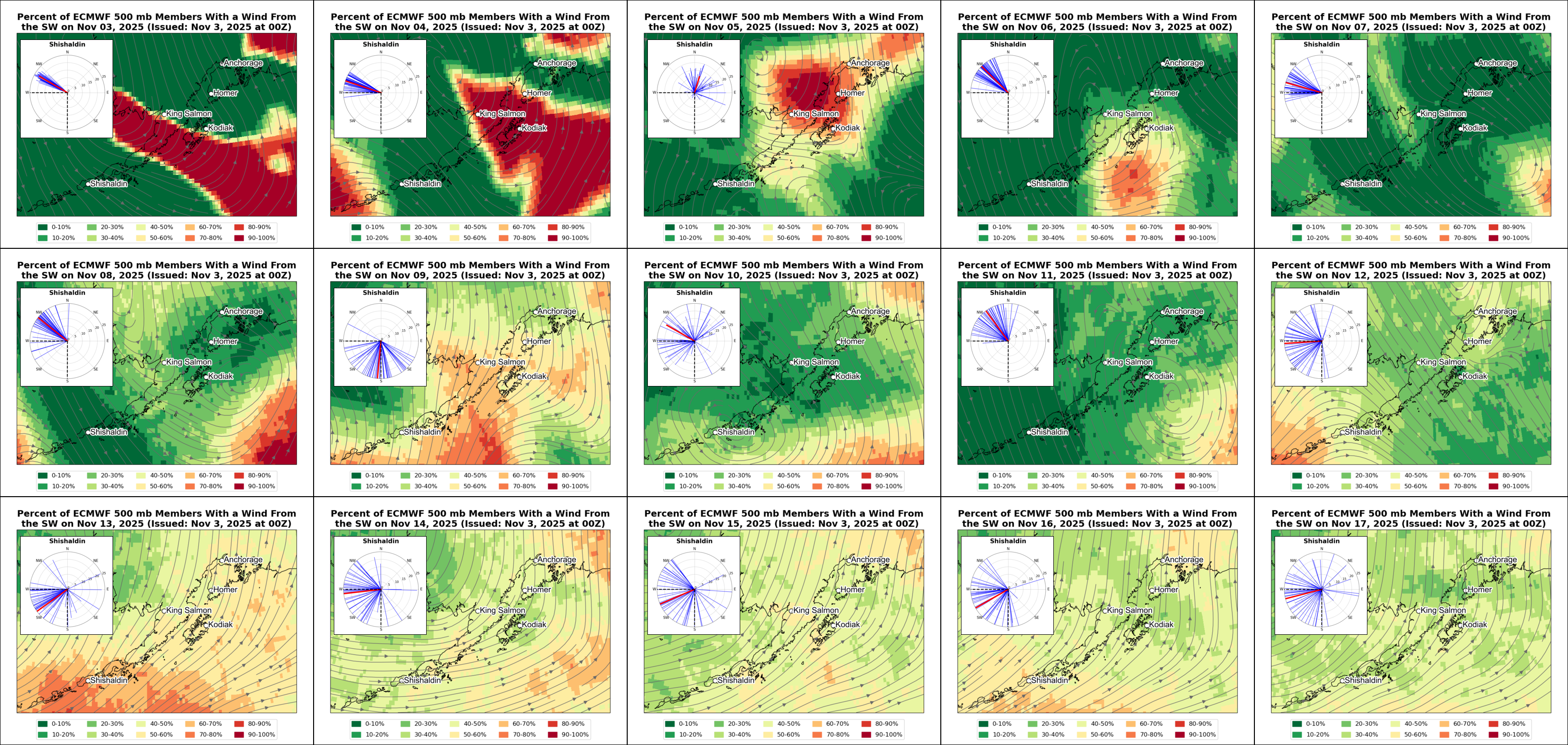 EXPERIMENTAL 2-week westerly wind probability for Mt Shishaldin at 500mb