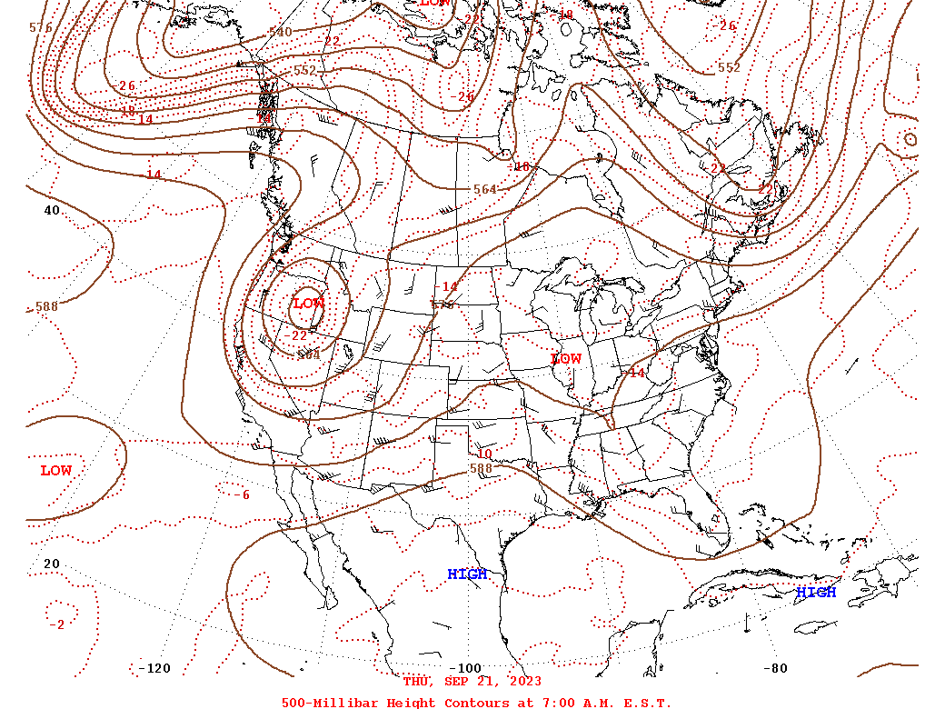 | Loop of WPC Surface Analysis from 12z/8 AM on 9/22 to 12z/8 AM on 9/24 | Loop of WPC 500mb Analysis from 12z/8 AM on 9/21 to 12z/8 AM on 9/24 |