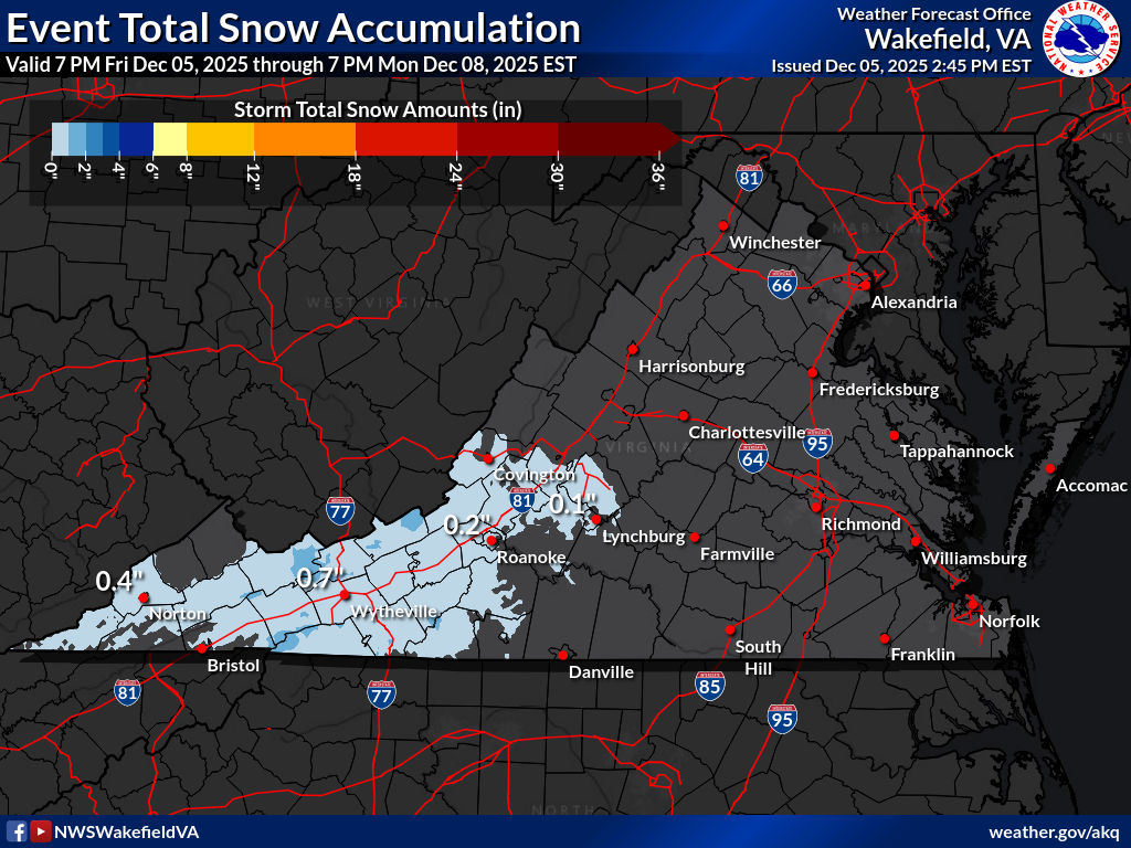 | INTERACTIVE GRAPHICAL FORECASTS | CLICK HERE FOR INTERACTIVE OBSERVATION MAP | CLICK HERE FOR VA RIVERS DATA | NWS WAKEFIELD ENHANCED GRAPHICS PAGE (Includes data for VDEM Regions 1 & 5) |