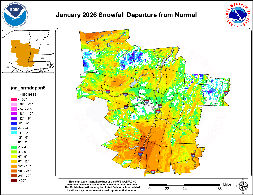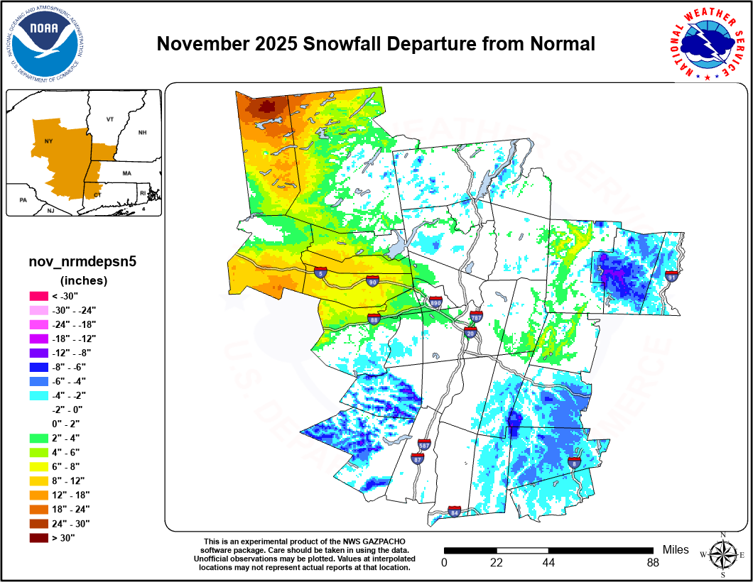 2025-26 Seasonal Snowfall NWS Albany Departure from Normal |