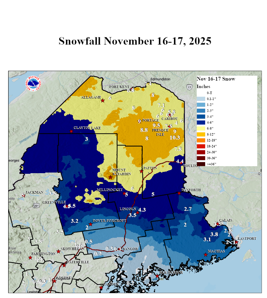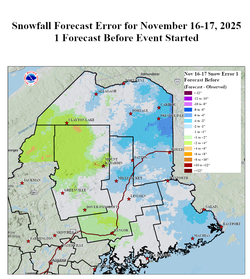 Winter 2024/2025 Season-to-Date Snowfall Forecast Errors