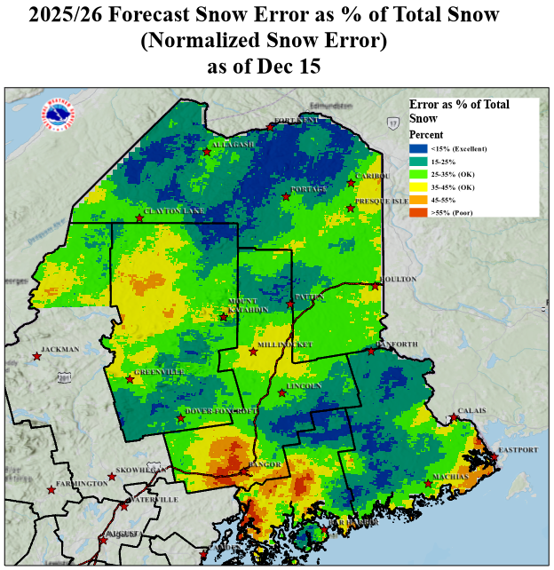 Winter 2025/2026 Season-to-Date Snowfall Forecast Errors