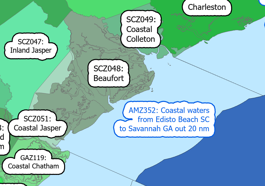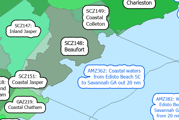 NWS Charleston has conducted a thorough review of zone boundaries along the South Carolina and Georgia coasts. The following adjustments have been made in order to