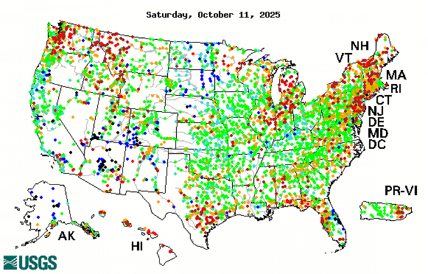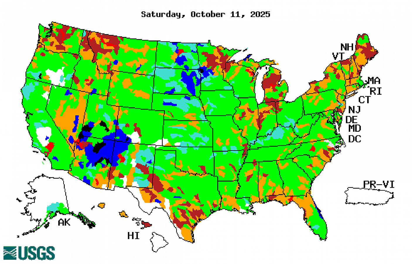 | USGS U.S. Streamgage Streamflow Percentiles (1-Day) | USGS U.S. Hydro Region Streamflow Percentiles (1-Day) |