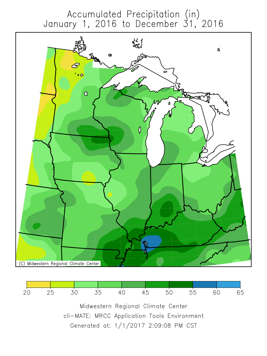 | Precipitation totals for 2016 were about 4 inches below normal at Iowa City to 8 inches above normal at Cedar Rapids. |