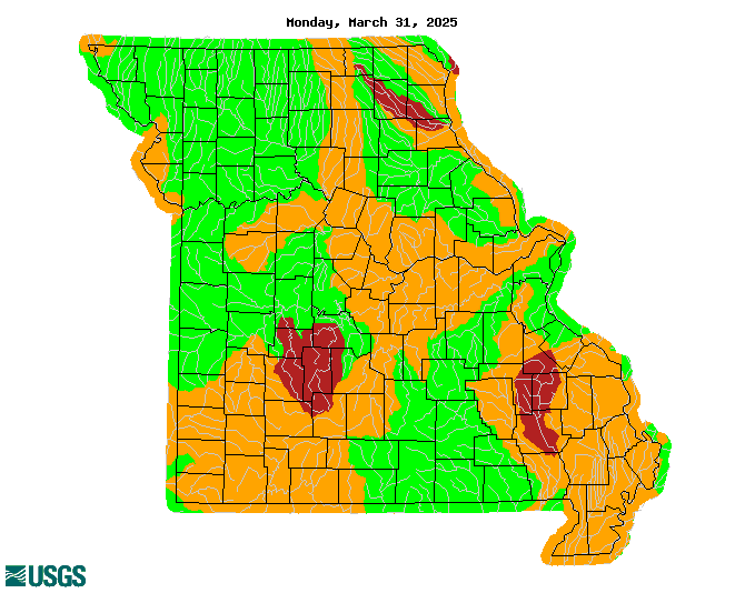 slighly elevated risk for high runoff from spring rains as these watersheds are observing wetter than normal soils.