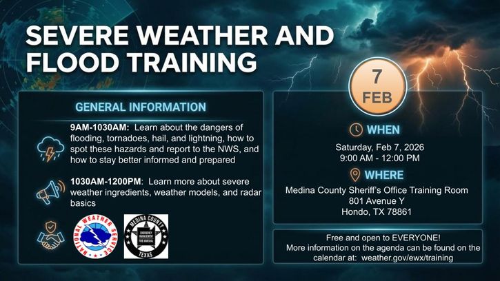 Interested in how to stay informed and prepared for severe weather and flooding and how to report these hazards to the NWS? We have a class in Hondo, TX on Feb 7th from 9 AM to 12 PM to help! Curious about other classes scheduled around the region? Visit: https://weather.gov/ewx/training