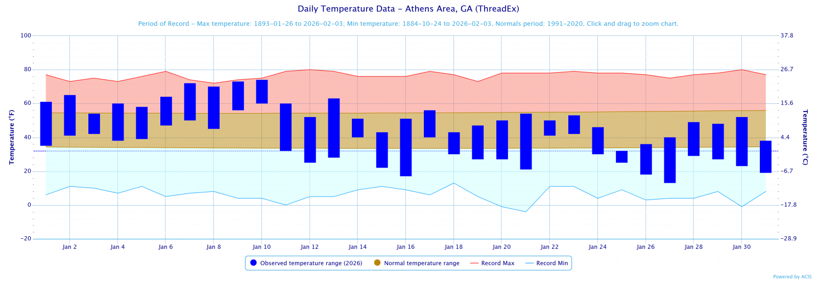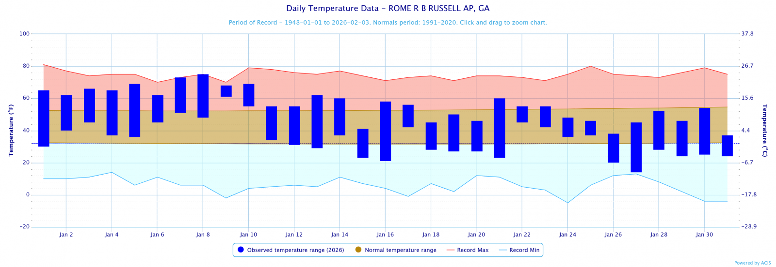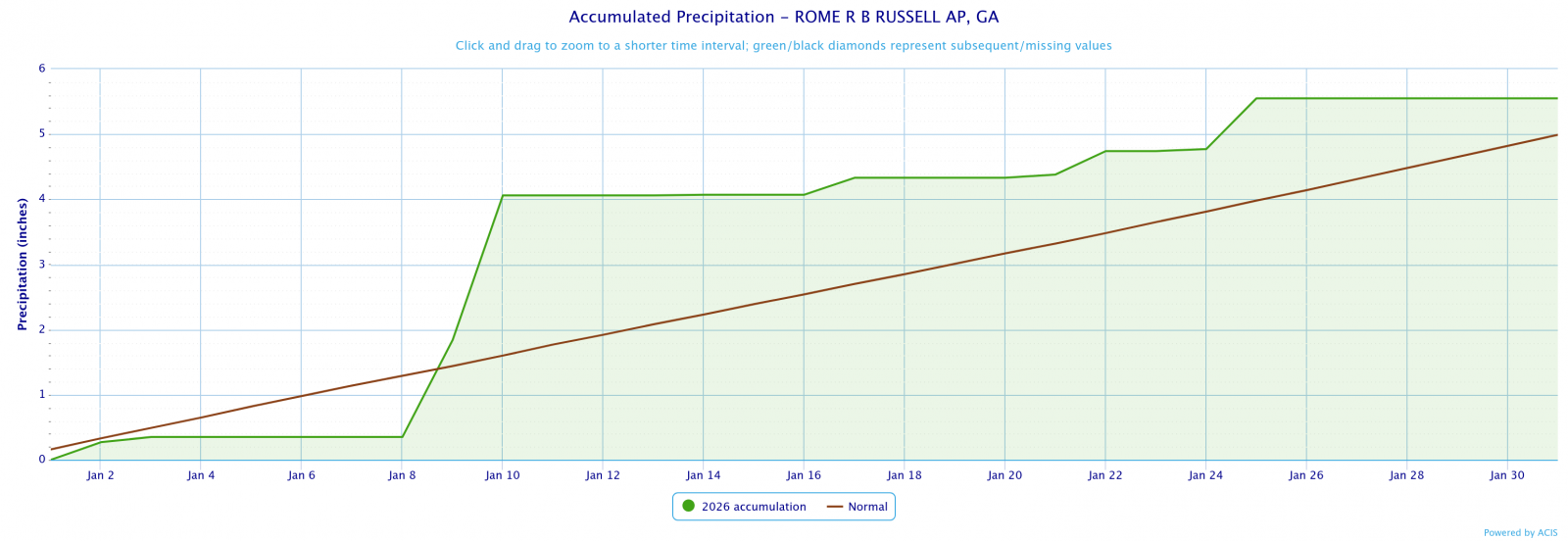 Click the links below to explore the temperature and precipitation data across north and central Georgia for the month of January 2024.
