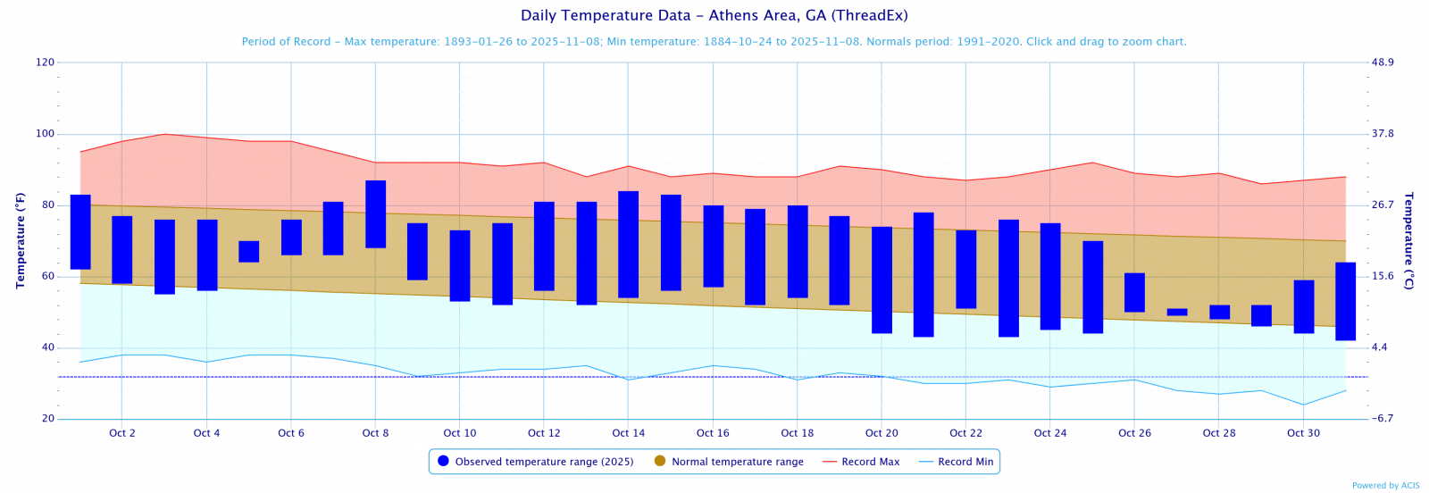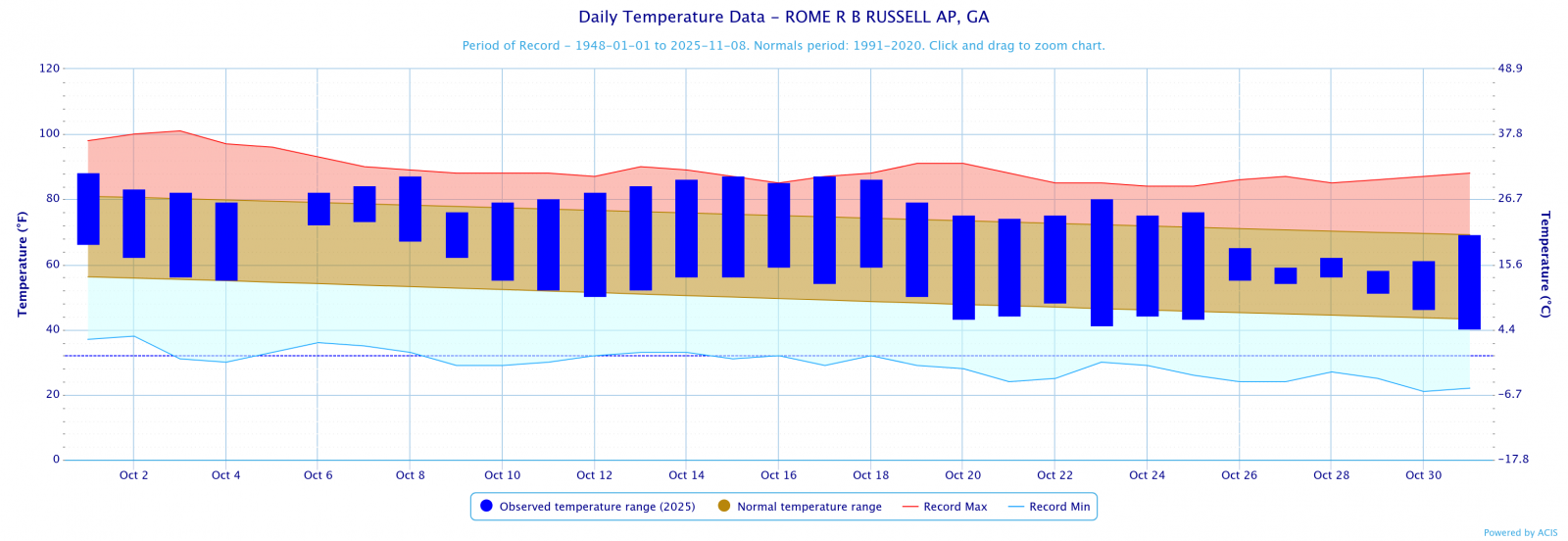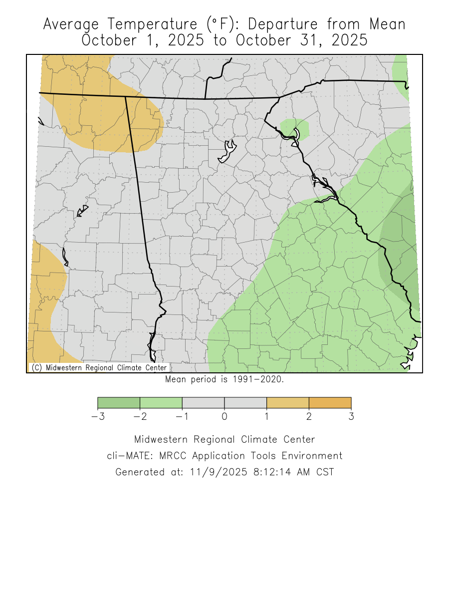 Click the links below to explore the temperature and precipitation data across north and central Georgia for the month of October 2024.
