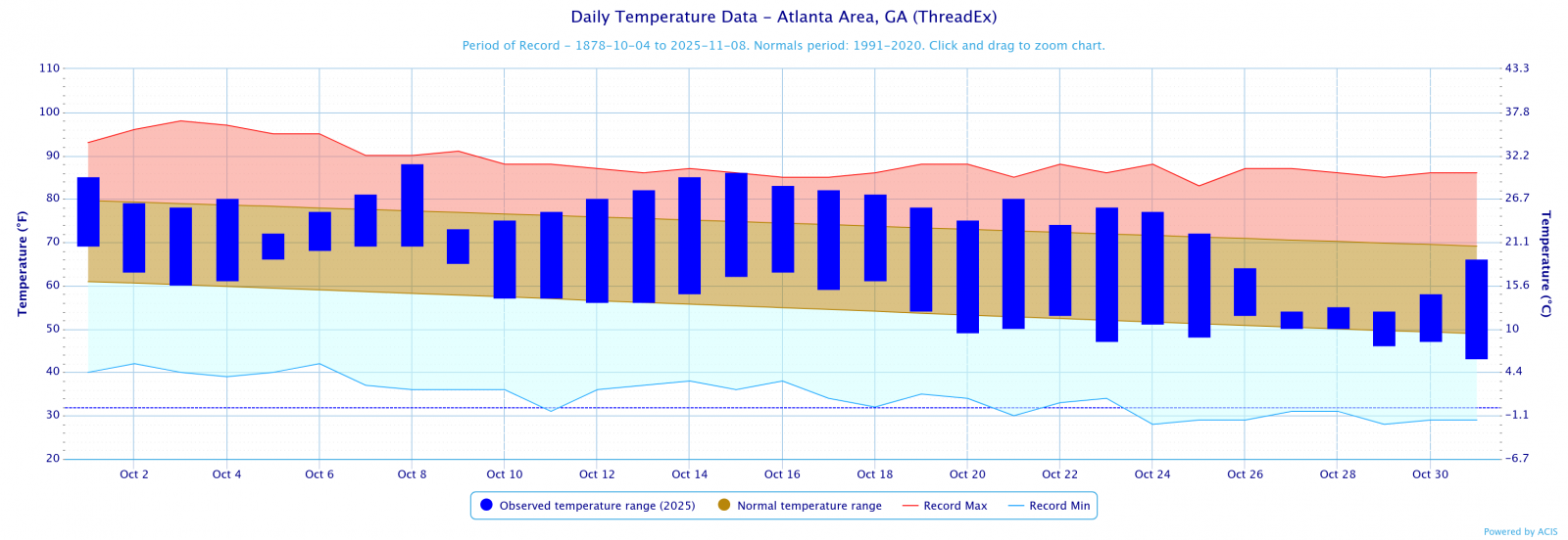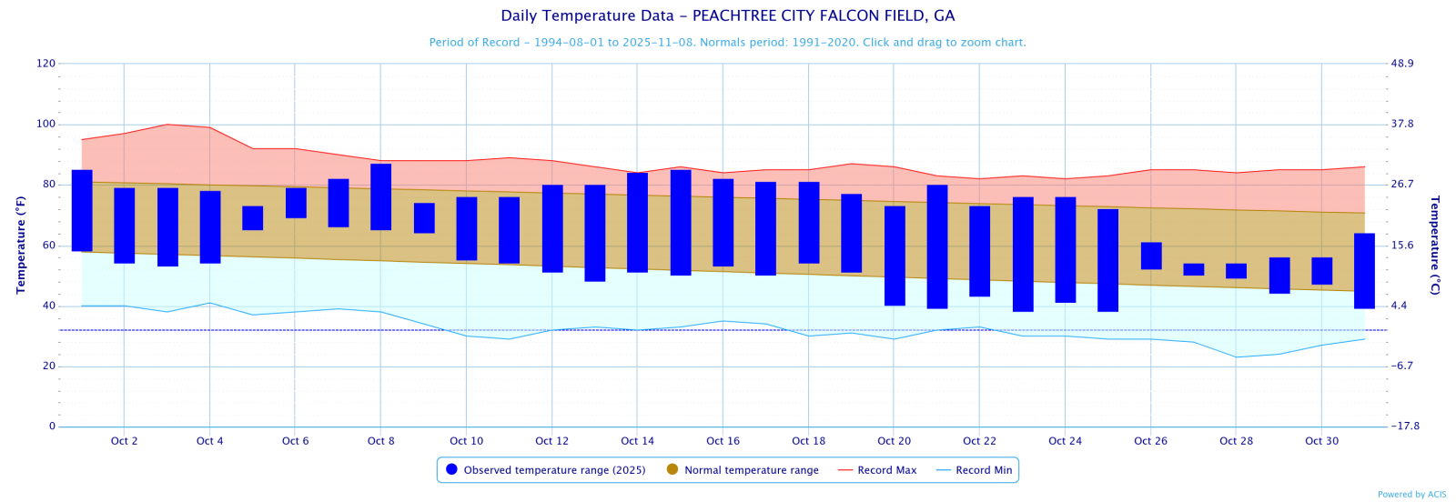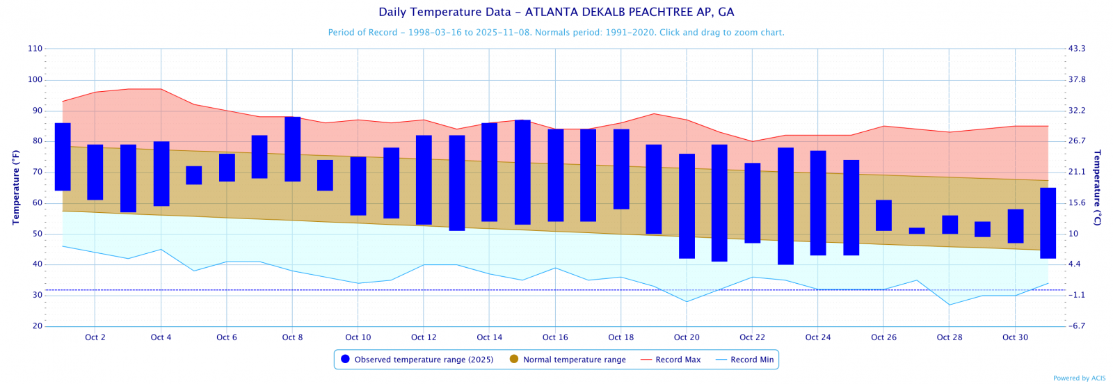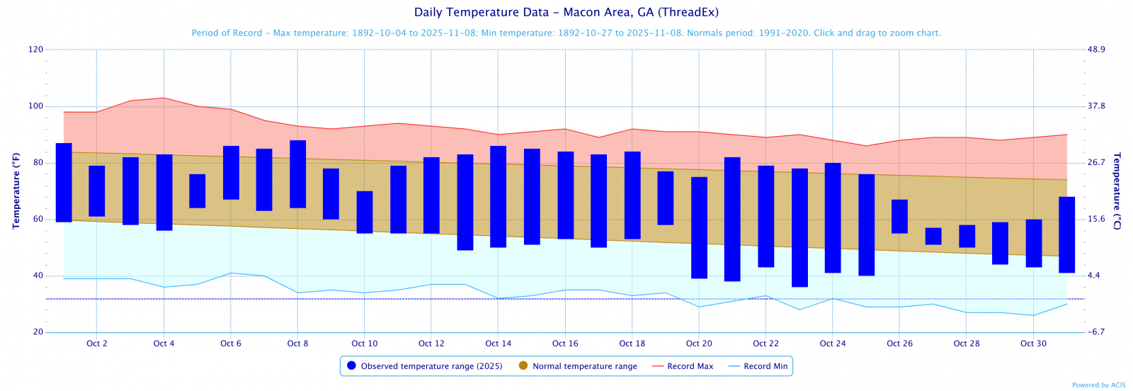 Click the links below to explore the temperature and precipitation data across north and central Georgia for the month of October 2024.