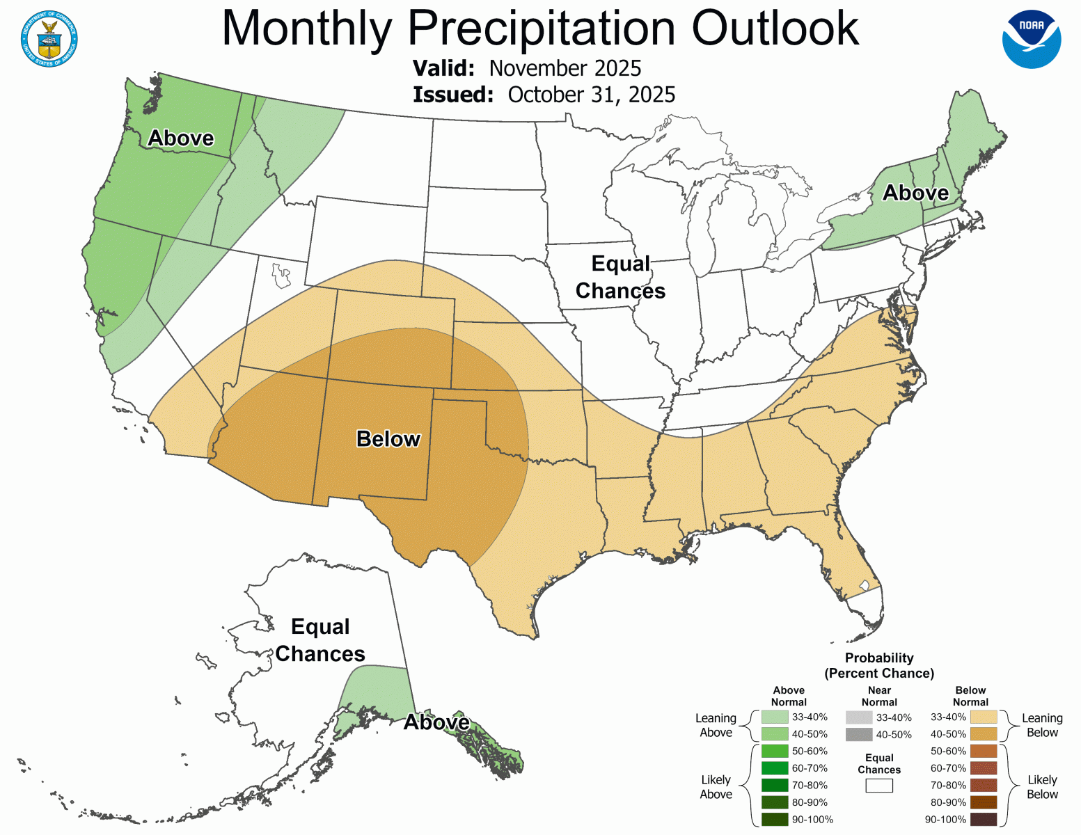 Climate Site Maximum Temperature Max T Date Climate Site Total Precipitation DFN (Departure Climate Site Maximum Daily Precip (in inches) Max P Date Data prepared by NWS Peachtree City/Atlanta Based on the Climate Prediction Center's outlook for November, north and central Georgia has equal chances for above or below normal temperatures. For precipitation, all of north and central Georgia has a 33-40% chance of seeing below normal precipitation.
