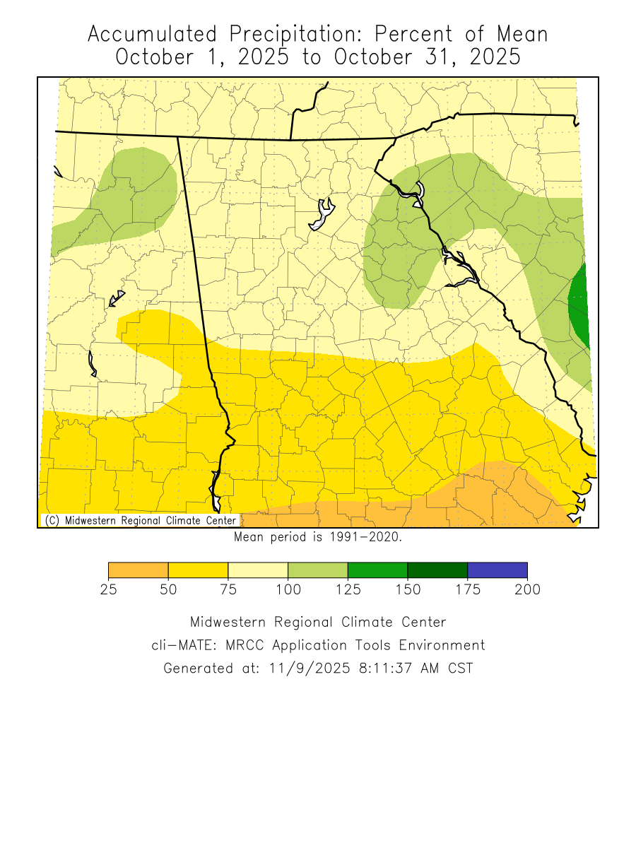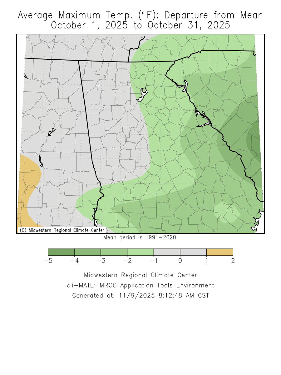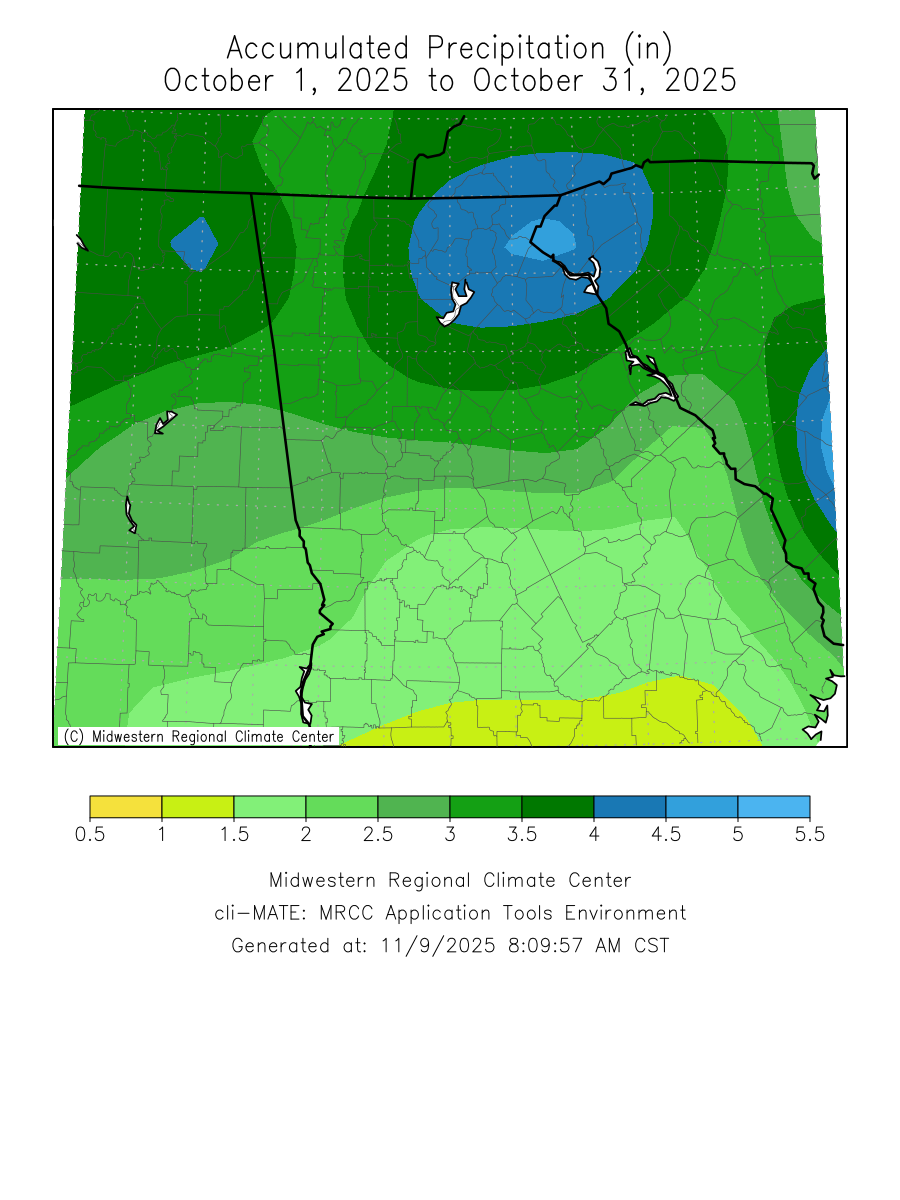 Temperatures through the month of October were around normal. Precipitation through the month of October was also around normal.