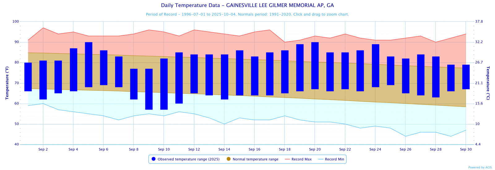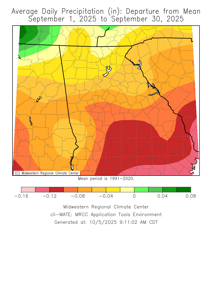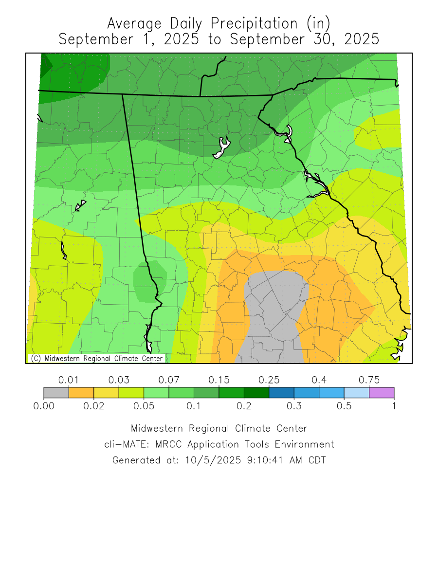 Click the links below to explore the temperature and precipitation data across north and central Georgia for the month of September 2025.