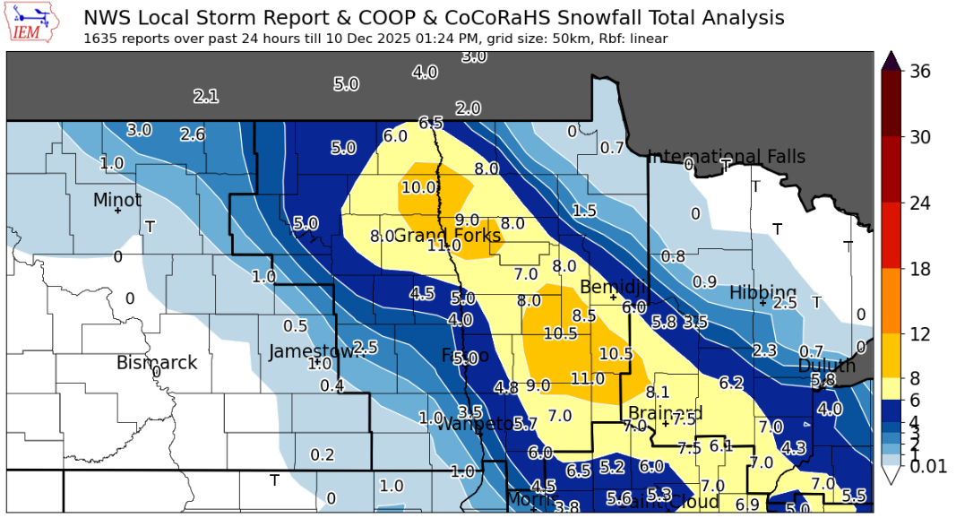 A clipper system brought freezing rain and heavy snow to portions of the region. |