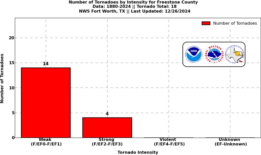 Tornadoes in Freestone Co. by Year![]() Click image for larger figure |