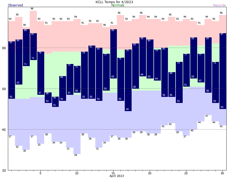 You are at NWS Houston/Galveston » SE TX Climate » College Station Climate» Climate Graphs - CLL