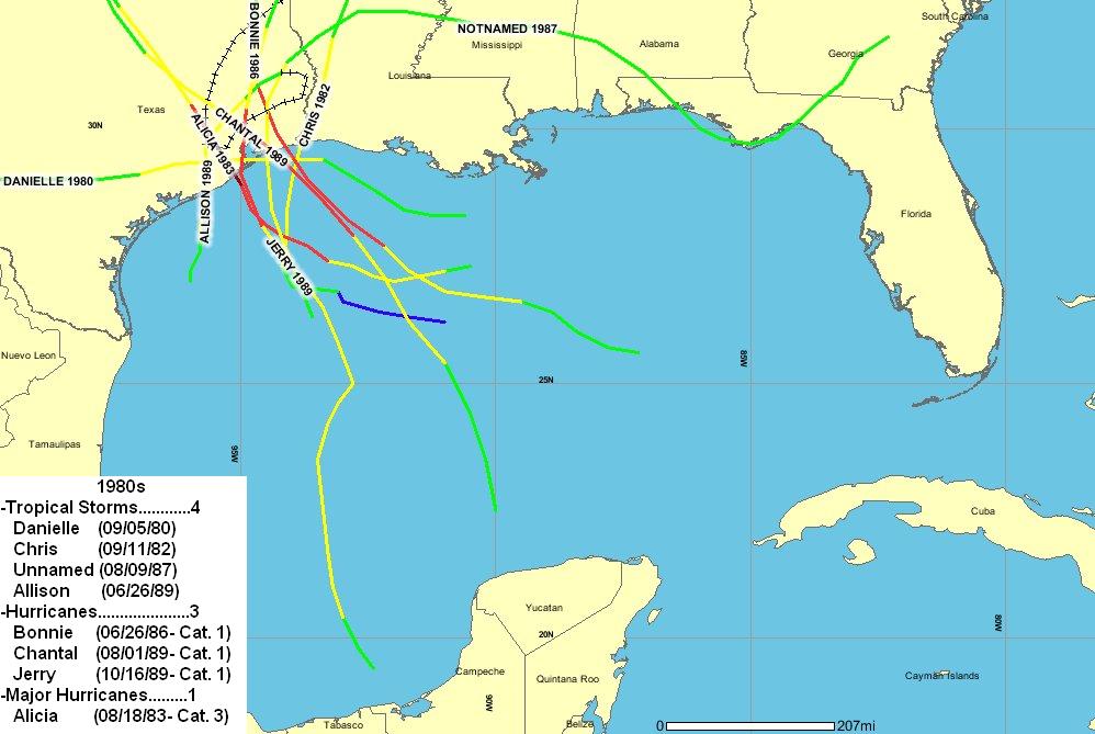 ALICIA | Hurricane - Cat. 3 / W end of GLS Island |