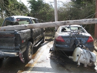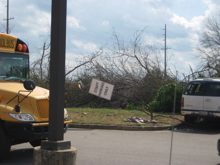 The tornado then tracked through the Buckhorn High School campus with a path width of 50 to 100 yards. A block building used by the ROTC students adjacent to the stadium collapsed.  Several portions of the roof of the high school were torn off.  Several cars in the parking lot were moved, twisted, and damaged with some windows being blown out.  The tornado then crossed Winchester Road and severely collapsed a home, snapped and uprooted trees and strewn debris downwind across an adjacent cotton field where the tornao is believe to have lifted.