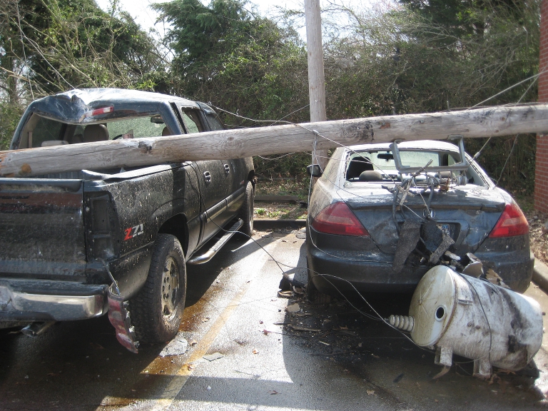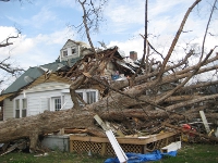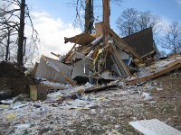 The tornado snapped power poles and brought down power lines along Moore's Mill Road just north of Darwin Road.  The tornado then intensified and destroyed a silo just east of that location before snapping trees and collapsing a barn on Macon Lane.   The EF-2 tornado continued east causing significant tree damage and structural loss to residences along Rube Robinson Road and Morning Mist Drive.  Most residences experienced roof damage (loss of shingles) and blown out windows.  One home on Morning Mist Drive completely collapsed and was torn off its foundation.  The tornado was at its peak width of about 220 yards at this point before narrowing to to 50 to 100 yards as it re-crossed Rube Robinson Road.  The tornado collapsed a roof and barn in this area and then crossed fields for about 1 mile before reaching residents adjacent to Buckhorn High School on Shady Oak Lane and Maysville Lane. A power pole and numerous trees were down or snapped along Maysville Lane.  A residence experienced significant damage, with brick walls buckled and a large portion of the roof torn off. A nearby cinder block wall of a garage collapsed.