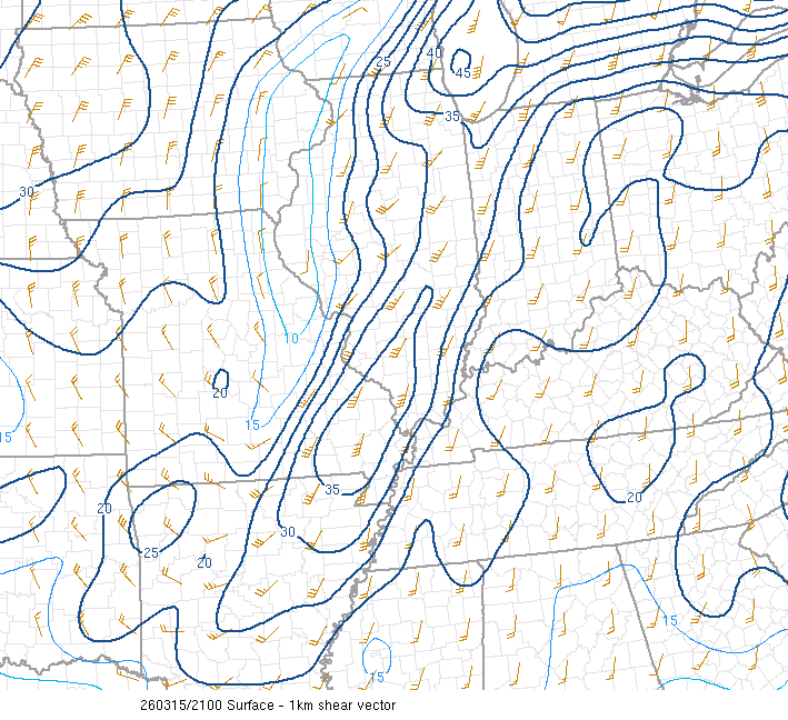 0-6KM SHEAR 4PM CDT MARCH 15, 2026 0-1KM SHEAR 4PM CDT MARCH 15, 2026