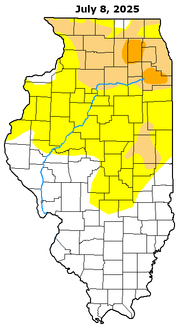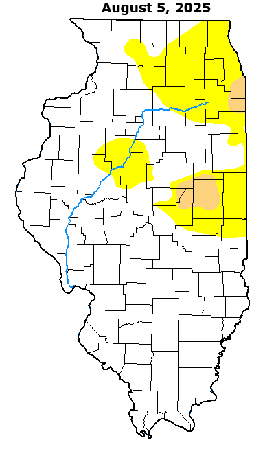 Most locations saw near or above average rainfall in July: however, all central Illinois climate sites have since experienced 4 consecutive months of below normal precipitation. The worst conditions continue to be focused over Champaign County...where a longer-term drought is ongoing. In fact, Champaign 3S has not experienced a month of above normal precipitation since December 2024.