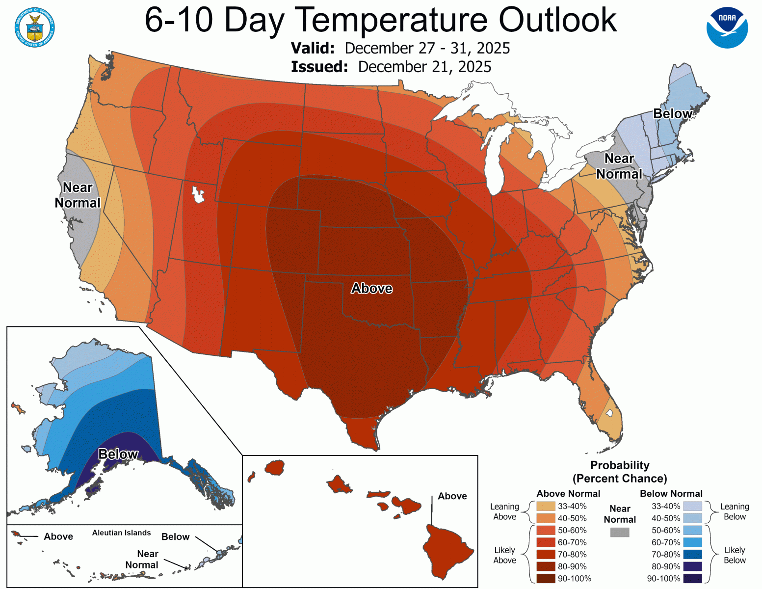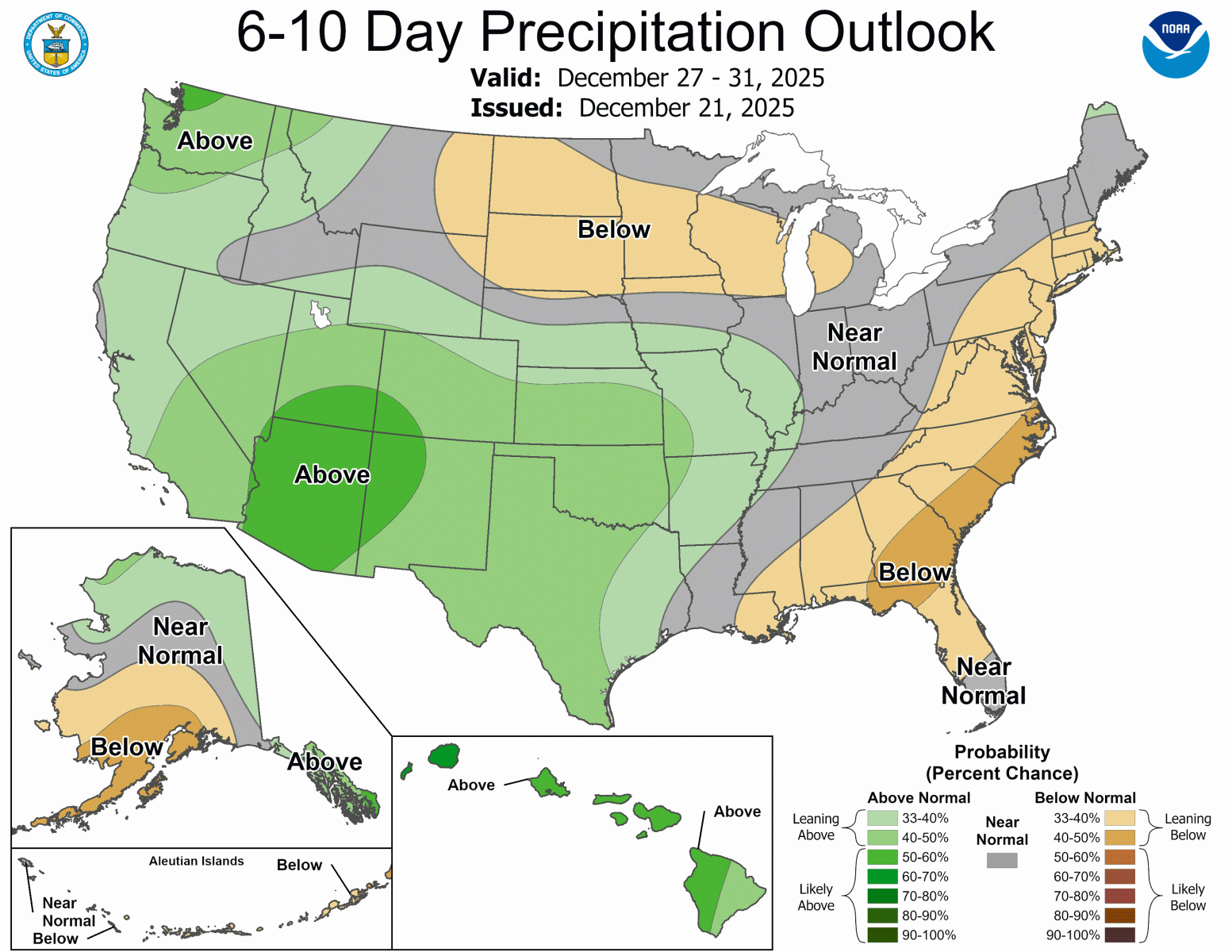 The latest 6-10 day outlooks (Dec 27-Dec 31) from the Climate Prediction Center (CPC) suggest ABOVE normal temperatures and NEAR normal precipitation across central Illinois.