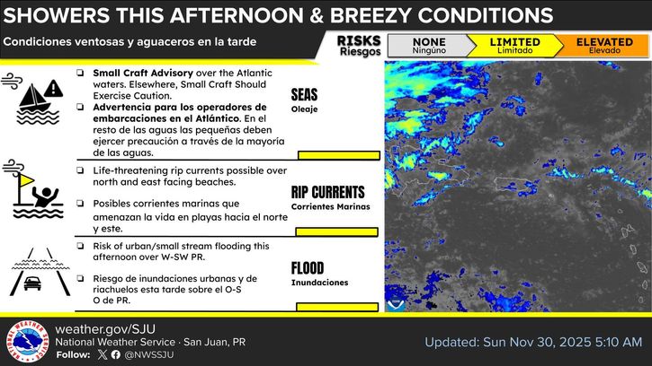 Una Advertencia para Operadores de Embarcaciones Pequeñas estará en efecto hasta las 6 AM del lunes para las aguas expuestas del Atlántico.