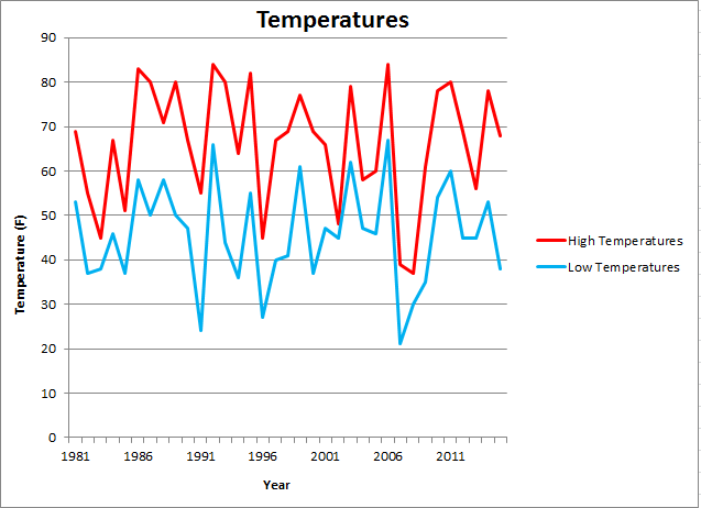 It's Easter weekend, and we thought it would be fun to look back in time and see what the weather was like for Easter's past. As such, we have come up with a climatology for both the Jackson NWS office/Julian Carroll Airport and the London-Corbin Airport observation sites, looking at temperatures and precipitation for the duration of data at the corresponding sites. How will we compare this year?