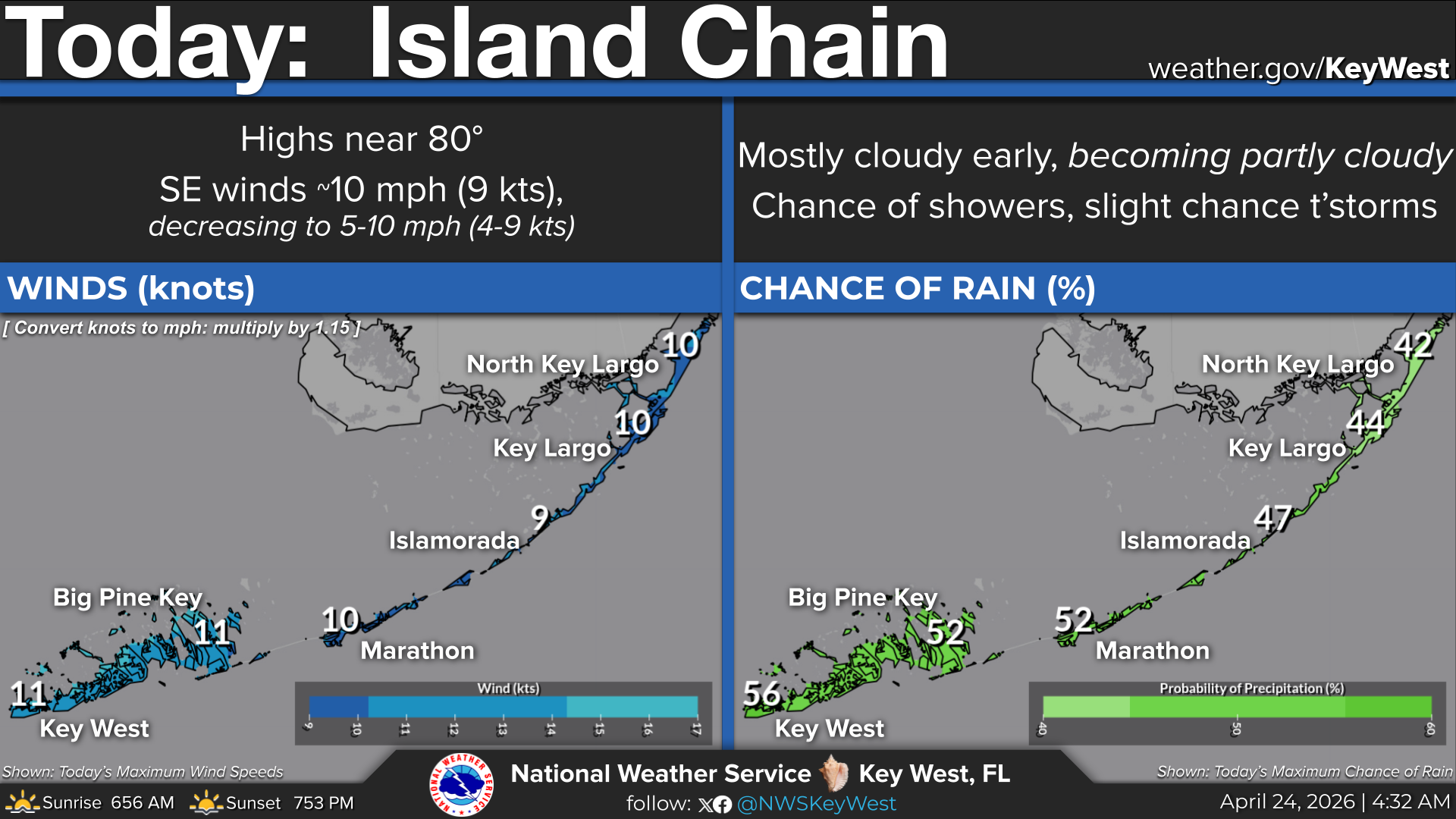 Seas 1 to 3 feet, except 3 to 4 feet west of the Marquesas Keys.