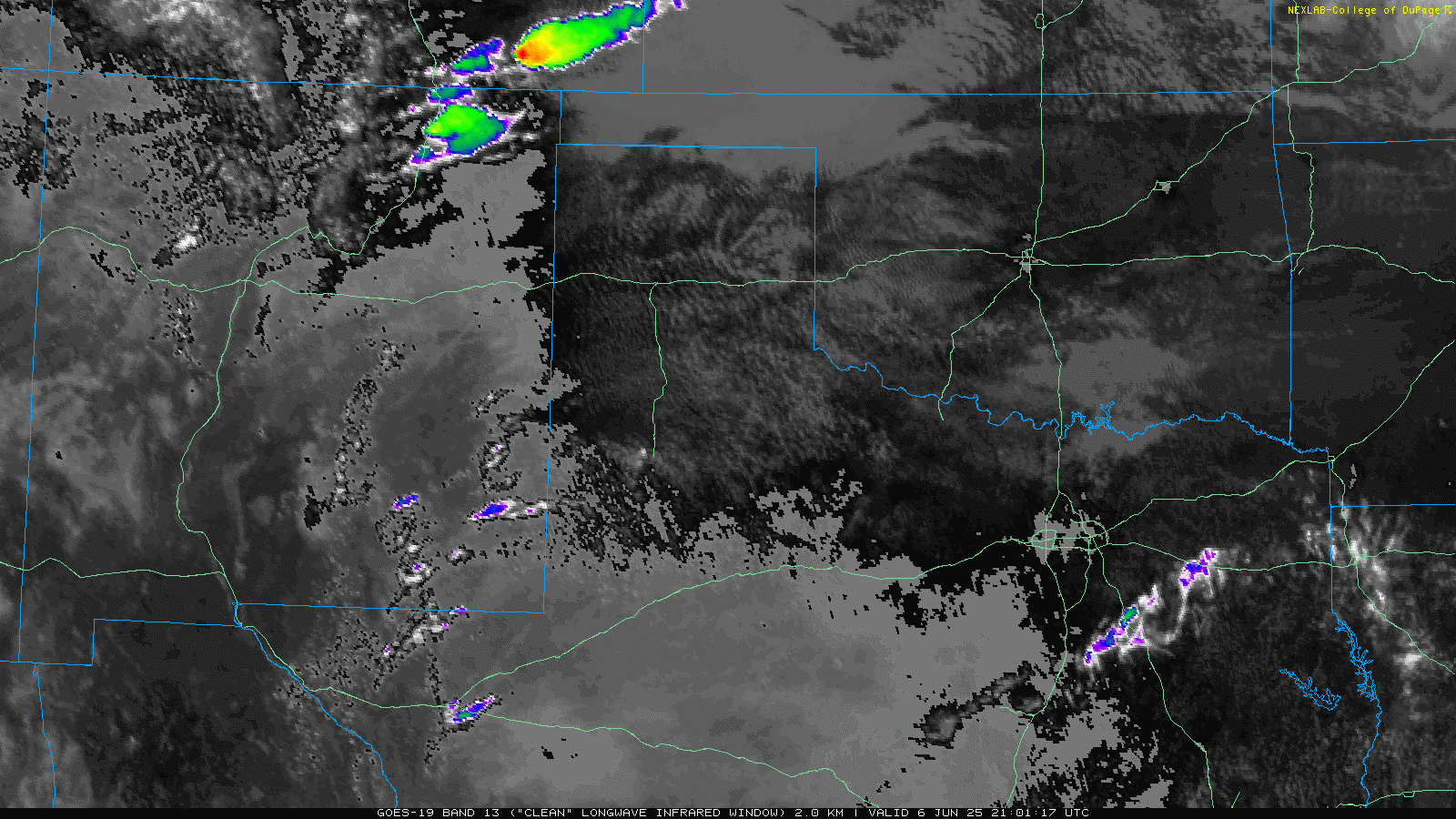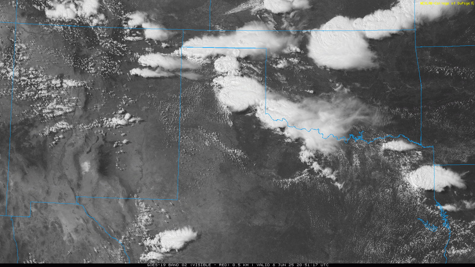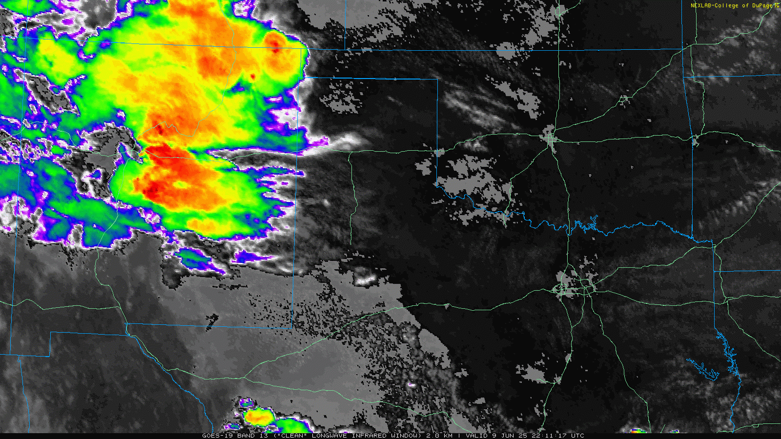 LBB WSR-88D radar animation valid from 4:30 pm to 9:56 pm on Sunday (8 June 2025). An additional radar animation, valid from 1:43 am to 6:18 am on Sunday, can be VIEWED HERE. A regional radar animation, valid from 1:05 pm on Sunday to 6:15 am on Monday (8-9 June), can be FOUND HERE. A visible satellite animation, valid from 3:01 pm to 8:11 pm on Sunday, can be VIEWED HERE. | |