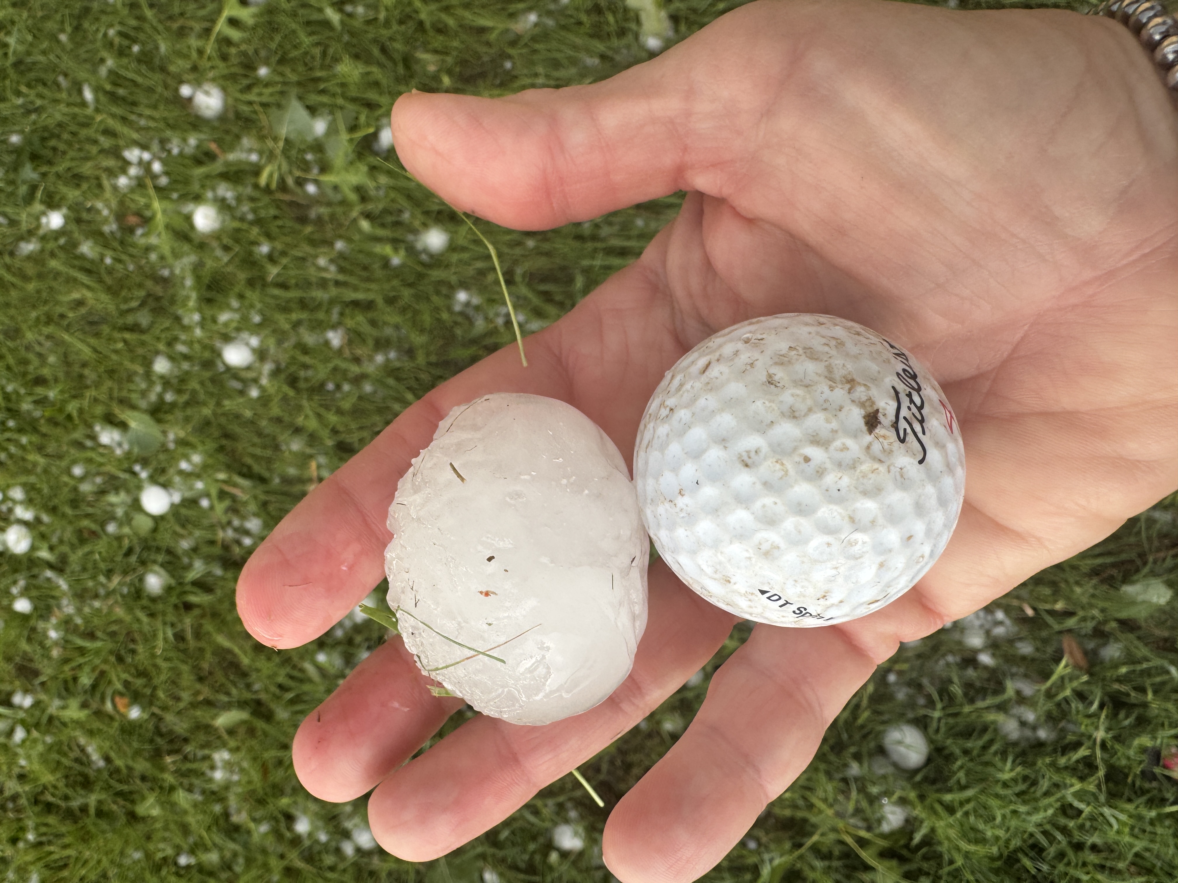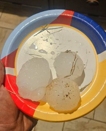 Large hail that fell north of Clairemont on Friday evening (6 June 2025). The picture is courtesy of Jeremy Carter. | |
