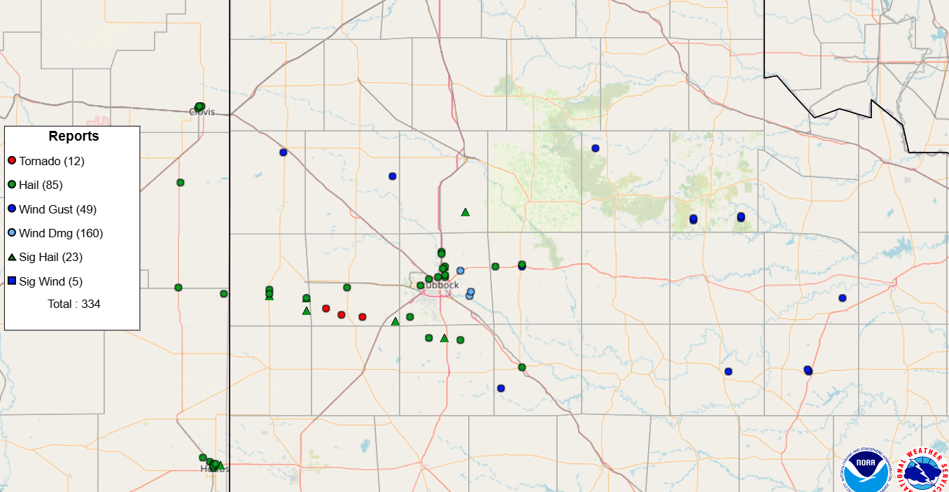 Preliminary Local Storm Report...Summary National Weather Service Lubbock TX 357 AM CDT Sat Jun 7 2025 ..TIME... ...EVENT... ...CITY LOCATION... ...LAT.LON... ..DATE... ....MAG.... ..COUNTY LOCATION..ST.. ...SOURCE.... ..REMARKS.. 0457 PM Hail 5 NW Lubbock 33.63N 101.90W 06/06/2025 E0.75 Inch Lubbock TX Public 0506 PM Hail 1 W Lubbock Int. Airpor 33.66N 101.83W 06/06/2025 E0.75 Inch Lubbock TX Public Report from mPING: Dime (0.75 in.). 0510 PM Hail 3 NNW Lubbock 33.62N 101.86W 06/06/2025 M1.00 Inch Lubbock TX Public 0519 PM Hail 4 WNW Lubbock 33.61N 101.91W 06/06/2025 E1.75 Inch Lubbock TX Public 0520 PM Hail 1 NNW Lubbock Int. Airp 33.67N 101.82W 06/06/2025 M1.25 Inch Lubbock TX Other Federal 0530 PM Hail 2 S Lubbock Int. Airpor 33.62N 101.82W 06/06/2025 M1.50 Inch Lubbock TX Emergency Mngr 0532 PM Hail New Deal 33.74N 101.84W 06/06/2025 E1.75 Inch Lubbock TX Public 0535 PM Hail 2 SW Lubbock Int. Airpo 33.63N 101.82W 06/06/2025 E0.75 Inch Lubbock TX Public Report from mPING: Dime (0.75 in.). 0537 PM Hail 2 SW Lubbock Int. Airpo 33.63N 101.82W 06/06/2025 E1.00 Inch Lubbock TX Public Report from mPING: Quarter (1.00 in.). 0539 PM Hail 1 W Lubbock Int. Airpor 33.66N 101.83W 06/06/2025 E1.00 Inch Lubbock TX Public Report from mPING: Quarter (1.00 in.). 0540 PM Hail 4 SW Bledsoe 33.57N 103.05W 06/06/2025 E0.75 Inch Cochran TX Public Report from mPING: Dime (0.75 in.). 0542 PM Hail 1 NNW Lubbock Int. Airp 33.67N 101.82W 06/06/2025 M2.00 Inch Lubbock TX Other Federal 0545 PM Tstm Wnd Dmg 3 WSW Idalou 33.65N 101.73W 06/06/2025 Lubbock TX Fire Dept/Rescue Overturned tractor trailer. 0605 PM Hail 12 S Morton 33.56N 102.82W 06/06/2025 E1.00 Inch Cochran TX Public Report from mPING: Quarter (1.00 in.). 0607 PM Tstm Wnd Dmg Ransom Canyon 33.53N 101.68W 06/06/2025 Lubbock TX Fire Dept/Rescue Large trees down. Blown out windows. 0610 PM Hail 13 SE Bledsoe 33.53N 102.82W 06/06/2025 E2.75 Inch Cochran TX Public Report from mPING: Baseball (2.75 in.). 0613 PM Hail 13 SE Bledsoe 33.54N 102.82W 06/06/2025 E1.75 Inch Cochran TX Public Report from mPING: Golf Ball (1.75 in.). 0617 PM Tstm Wnd Dmg 1 NNE Ransom Canyon 33.55N 101.67W 06/06/2025 Lubbock TX Fire Dept/Rescue 3 power poles down. 0619 PM Hail 13 SE Bledsoe 33.53N 102.82W 06/06/2025 E2.50 Inch Cochran TX Public Report from mPING: Tennis Ball (2.50 in.). 0643 PM Hail 6 S Whiteface 33.52N 102.61W 06/06/2025 M1.50 Inch Cochran TX Public Report from mPING: Ping Pong Ball (1.50 in.). 0650 PM Hail 6 S Whiteface 33.52N 102.61W 06/06/2025 E2.00 Inch Cochran TX Public Report from mPING: Hen Egg (2.00 in.). 0704 PM Tornado 1 NNW Sundown 33.47N 102.50W 06/06/2025 Hockley TX Trained Spotter 0704 PM Hail 7 W Sundown 33.46N 102.61W 06/06/2025 E2.50 Inch Cochran TX Public Report from mPING: Tennis Ball (2.50 in.). 0720 PM Tornado 5 ESE Sundown 33.44N 102.41W 06/06/2025 Hockley TX Trained Spotter 0725 PM Hail 1 SW Levelland 33.57N 102.38W 06/06/2025 E1.75 Inch Hockley TX Public Intersection of HWY 385 and Sandalwood Lane. 0732 PM Tornado 8 W Ropesville 33.43N 102.29W 06/06/2025 Hockley TX Trained Spotter 0743 PM Hail 3 E Ropesville 33.41N 102.10W 06/06/2025 M2.00 Inch Hockley TX Public 0750 PM Hail 5 S Wolfforth 33.43N 102.02W 06/06/2025 E1.00 Inch Lubbock TX NWS Employee 0757 PM Tstm Wnd Gst 5 SSW Graham 33.09N 101.50W 06/06/2025 M61 MPH Garza TX Mesonet West Texas Mesonet Report. 0812 PM Hail New Home 33.33N 101.91W 06/06/2025 M1.75 Inch Lynn TX Emergency Mngr 0822 PM Non-Tstm Wnd Gst 7 ESE Silverton 34.43N 101.19W 06/06/2025 M63 MPH Briscoe TX Mesonet West Texas Mesonet Report. 0832 PM Hail 5 W Wilson 33.33N 101.82W 06/06/2025 E3.25 Inch Lynn TX Public Report from mPING: Baseball+ (3.25 in.). 0834 PM Tstm Wnd Gst New Home 33.33N 101.91W 06/06/2025 M80 MPH Lynn TX Mesonet West Texas Mesonet Alert. 0841 PM Non-Tstm Wnd Gst 2 WSW Turkey 34.38N 100.93W 06/06/2025 M61 MPH Hall TX Mesonet West Texas Mesonet Report. 0842 PM Hail New Deal 33.73N 101.84W 06/06/2025 M1.00 Inch Lubbock TX Emergency Mngr New Deal Fire Station. 0842 PM Flood 3 E New Home 33.33N 101.86W 06/06/2025 Lynn TX Public Report from mPING: Street/road flooding; Street/road closed; Vehicles stranded. 0844 PM Flood 2 E New Home 33.33N 101.88W 06/06/2025 Lynn TX Public Report from mPING: Street/road flooding; Street/road closed; Vehicles stranded. 0847 PM Hail Wilson 33.32N 101.73W 06/06/2025 E1.50 Inch Lynn TX Emergency Mngr Picture from EM. 0910 PM Flash Flood Wilson 33.32N 101.72W 06/06/2025 Lynn TX Public Report from mPING: Street/road flooding; Street/road closed; Vehicles stranded. 0918 PM Hail 1 N Post 33.20N 101.38W 06/06/2025 E0.75 Inch Garza TX Public Report from mPING: Dime (0.75 in.). 0922 PM Hail Lorenzo 33.67N 101.53W 06/06/2025 E1.75 Inch Crosby TX Emergency Mngr 0924 PM Hail Post 33.19N 101.38W 06/06/2025 E1.75 Inch Garza TX Public Picture from social media. 0927 PM Flash Flood Post 33.19N 101.38W 06/06/2025 Garza TX Public Report from mPING: Street/road flooding; Street/road closed; Vehicles stranded. 0929 PM Flash Flood 1 N Post 33.20N 101.38W 06/06/2025 Garza TX Public Report from mPING: Street/road flooding; Street/road closed; Vehicles stranded. 0933 PM Flood 5 W Wilson 33.33N 101.81W 06/06/2025 Lynn TX Emergency Mngr Pictures show road completely covered in water. 0935 PM Hail Ralls 33.68N 101.38W 06/06/2025 M1.75 Inch Crosby TX Emergency Mngr 0936 PM Tstm Wnd Gst 1 SE Ralls 33.67N 101.38W 06/06/2025 M62 MPH Crosby TX Mesonet 0937 PM Tstm Wnd Gst 3 NE Aspermont 33.17N 100.20W 06/06/2025 E68 MPH Stonewall TX Mesonet 0942 PM Flash Flood Post 33.19N 101.38W 06/06/2025 Garza TX Public Report from mPING: Street/road flooding; Street/road closed; Vehicles stranded. 0946 PM Hail 7 NW Aspermont 33.21N 100.31W 06/06/2025 M0.75 Inch Stonewall TX Public Report from mPING: Dime (0.75 in.). 1000 PM Hail 1 ENE Reese Center 33.60N 102.01W 06/06/2025 E0.70 Inch Lubbock TX Fire Dept/Rescue 1001 PM Hail 4 E Reese Center 33.58N 101.95W 06/06/2025 E0.75 Inch Lubbock TX Public Report from mPING: Dime (0.
