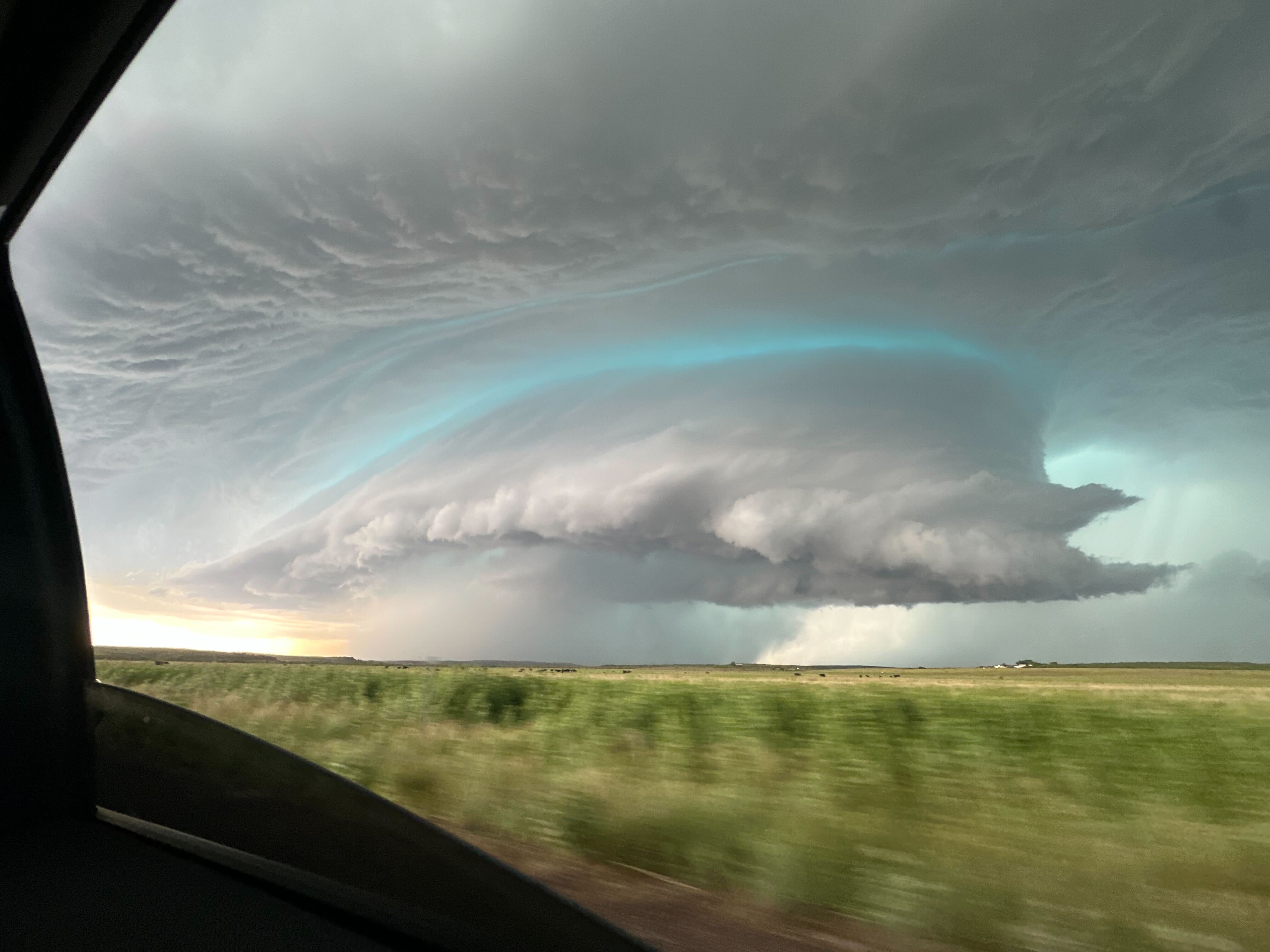 Supercell thunderstorm photographed over southeast Lubbock County Friday evening (6 June 2025). The picture is courtesy of Harrison Sincavage. |