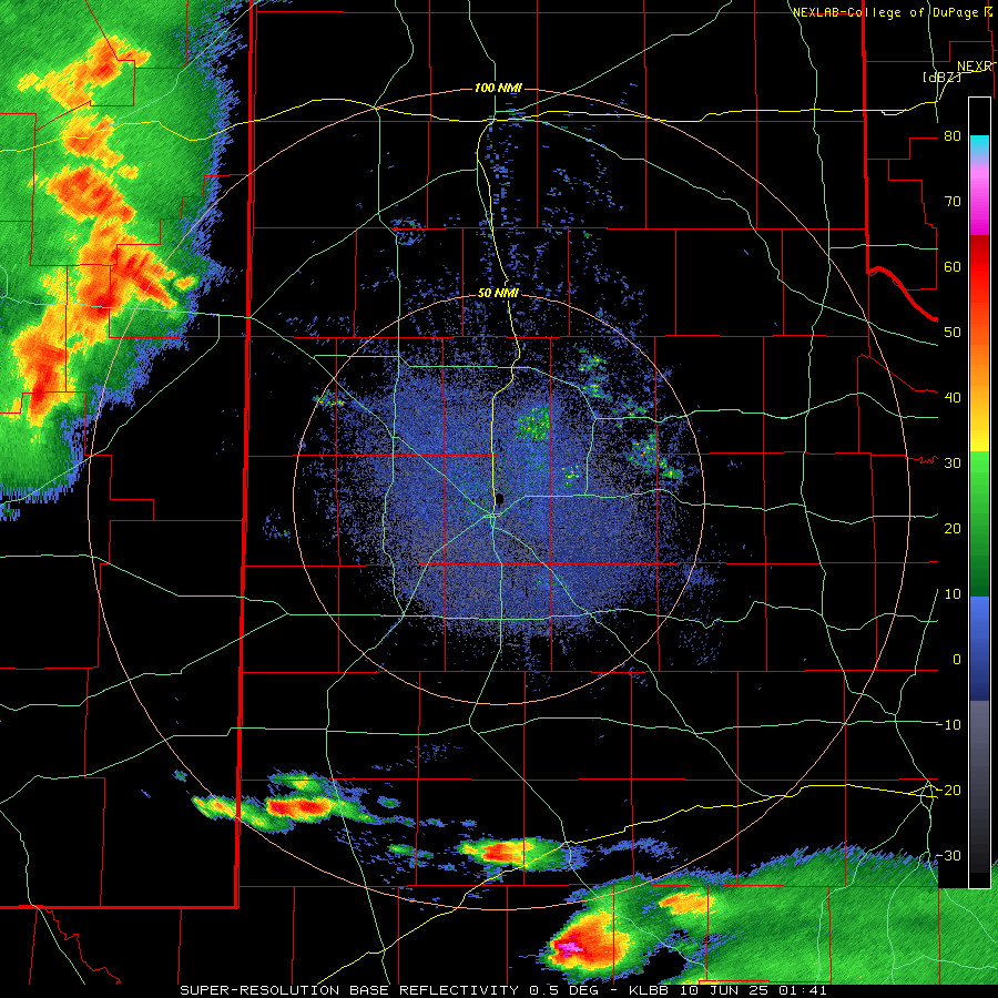LBB WSR-88D radar animation valid from 8:41 pm on Monday to 6:51 am on Tuesday (9-10 June 2025). A regional radar animation, valid from 2:05 pm to 10:05 pm on Monday, can be FOUND HERE. | |