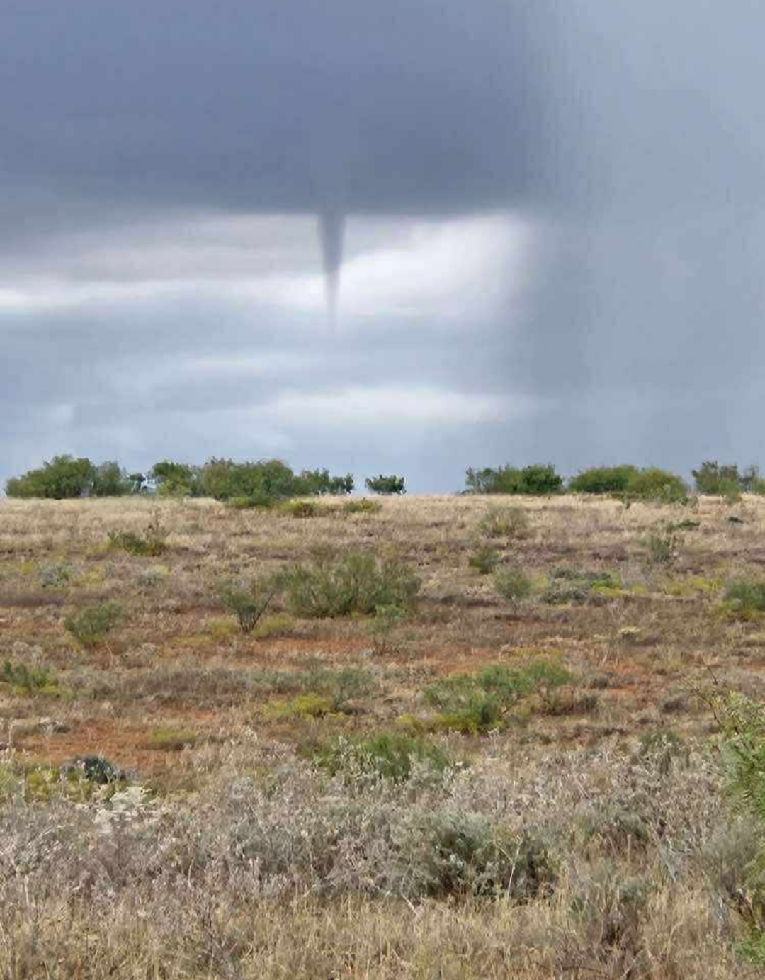 | Funnel cloud observed about 10 miles west of Guthrie on Saturday afternoon (25 October 2025). The picture is courtesy of Susan Harbert and Telemundo Abilene. | |