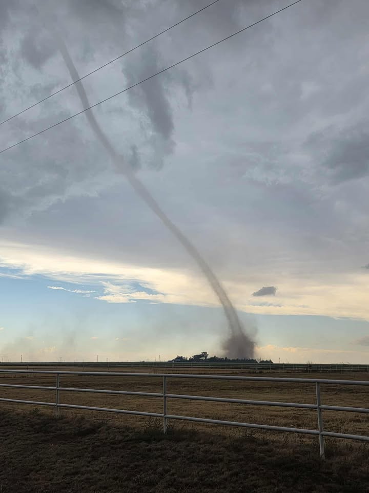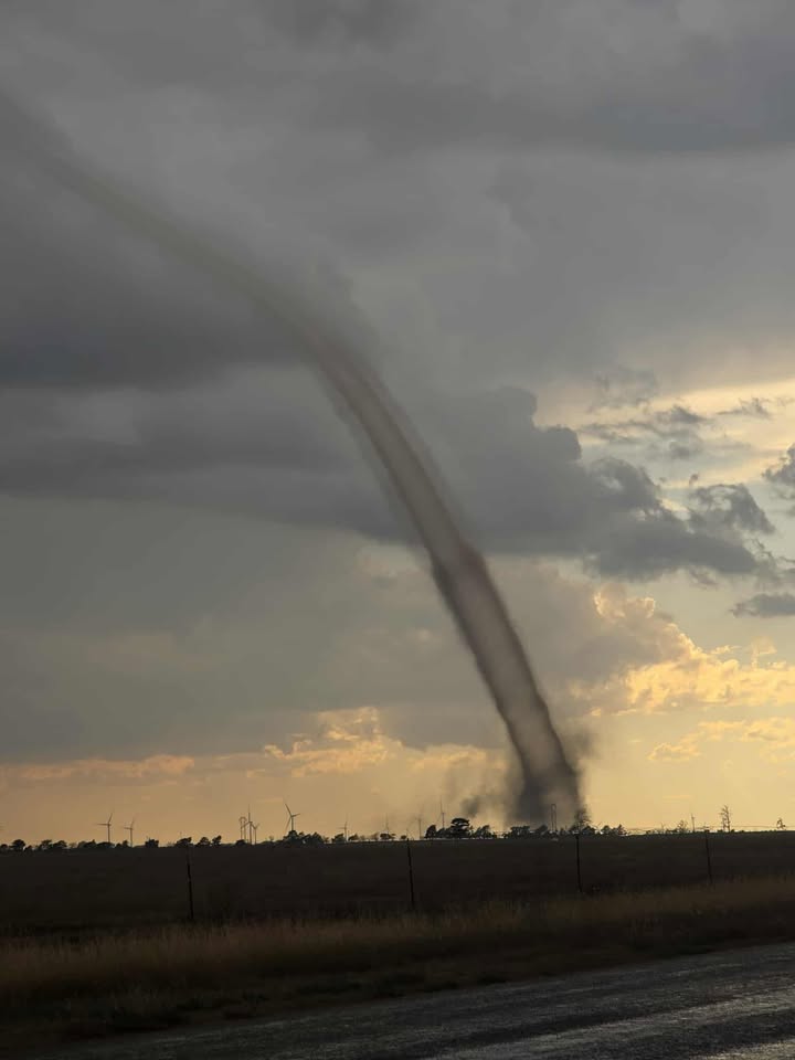 | Landspout-type tornado photographed near Dimmitt late Friday afternoon (24 October 2025). The pictures are courtesy of Ben Elmore. | |
