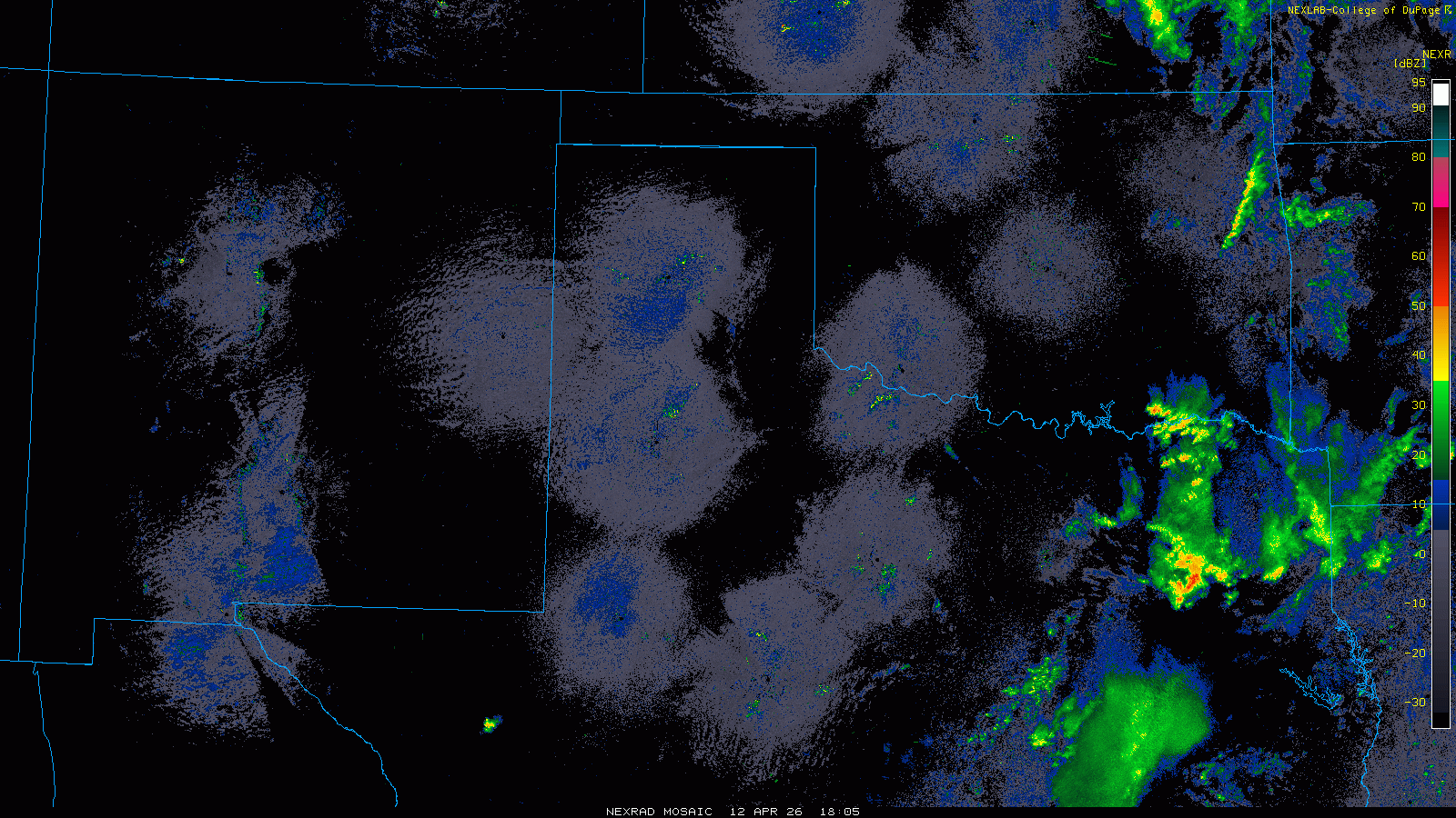 Regional radar animation valid from 1:55 pm on Saturday to 2:15 am on Sunday (11-12 April 2026). An "RGB-True Color" satellite loop, valid from 12:31 pm to 65 pm on Saturday, can be VIEWED HERE. |