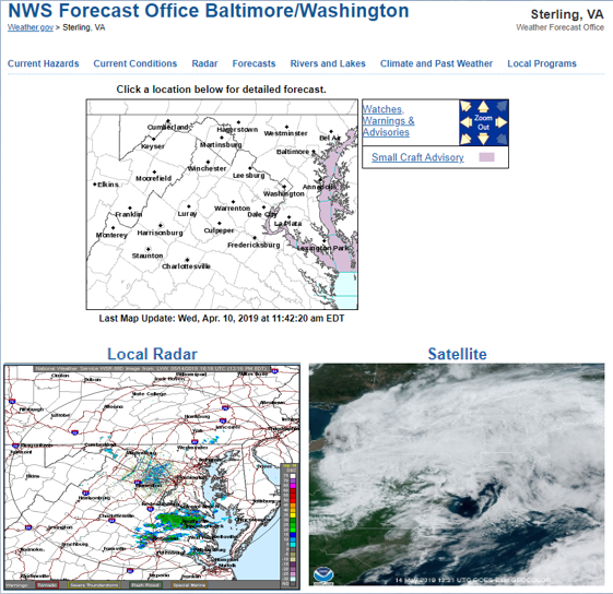 Below the map of our area that displays any watches or warnings that are in effect, you'll quickly see the latest loops of radar and satellite imagery for easy access. You'll also be able to access the latest observations on a map. You can click on any of these to get a full screen view.