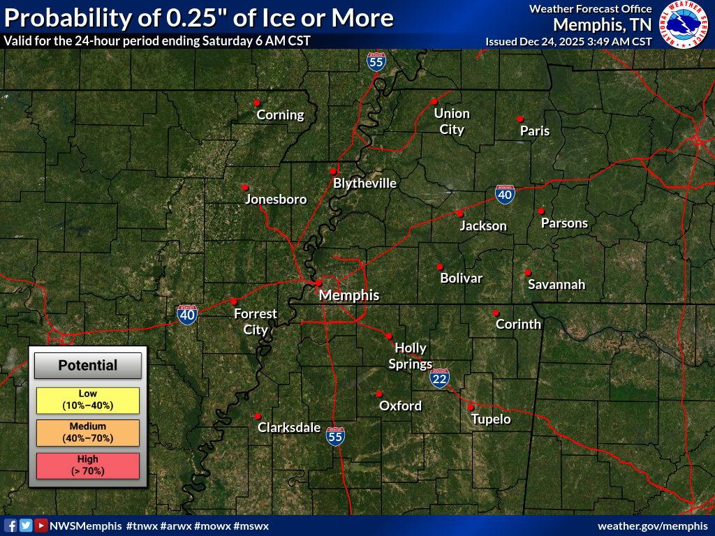 Welcome to the NWS Memphis Probabilistic Decision Support Services Page. Information contained here is intended to show a range of weather possibilities that the area could experience over the next seven days for certain weather variables (i.e. temperature, precipitation, etc.). Graphics shown on this page are the official forecast as well as graphics generated/derived from the National Weather Service (NWS) National Blend of Models (NBM) and PWPF data.