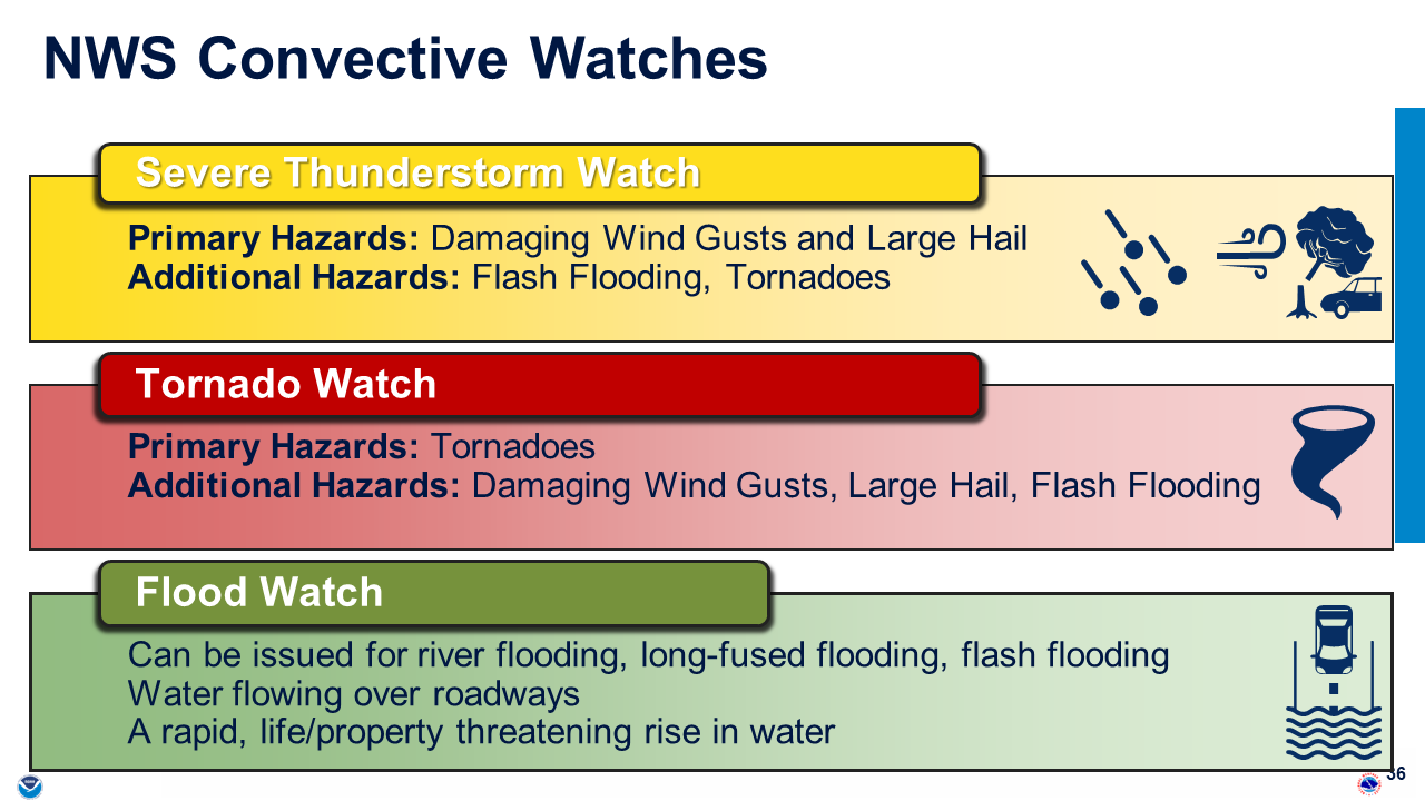Other warm-season hazards include large hail stones that can result in damage in the millions of dollars, localized flash floods or widespread river and lowland flooding, lightning, and excessive heat.