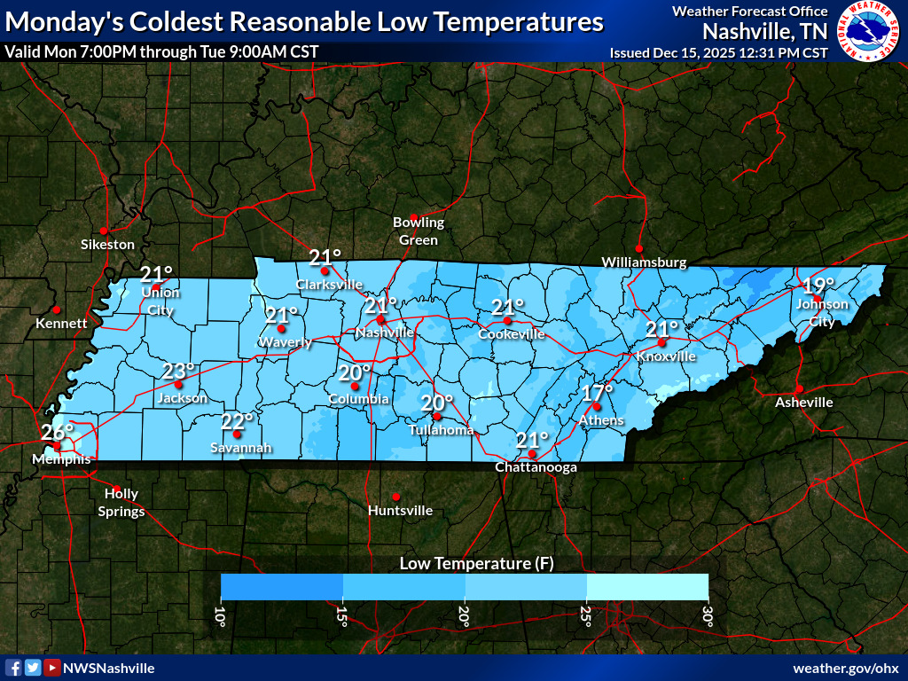 Welcome to the NWS Nashville Probabilistic Decision Support Services Page. Information contained here is intended to show a range of weather possibilities that the area could experience over the next 7 days for certain weather variables (i.e. temperature, precipitation, etc.). Graphics shown on this page are the official forecast as well as graphics generated/derived from the National Weather Service (NWS) National Blend of Models (NBM) version 4.1.