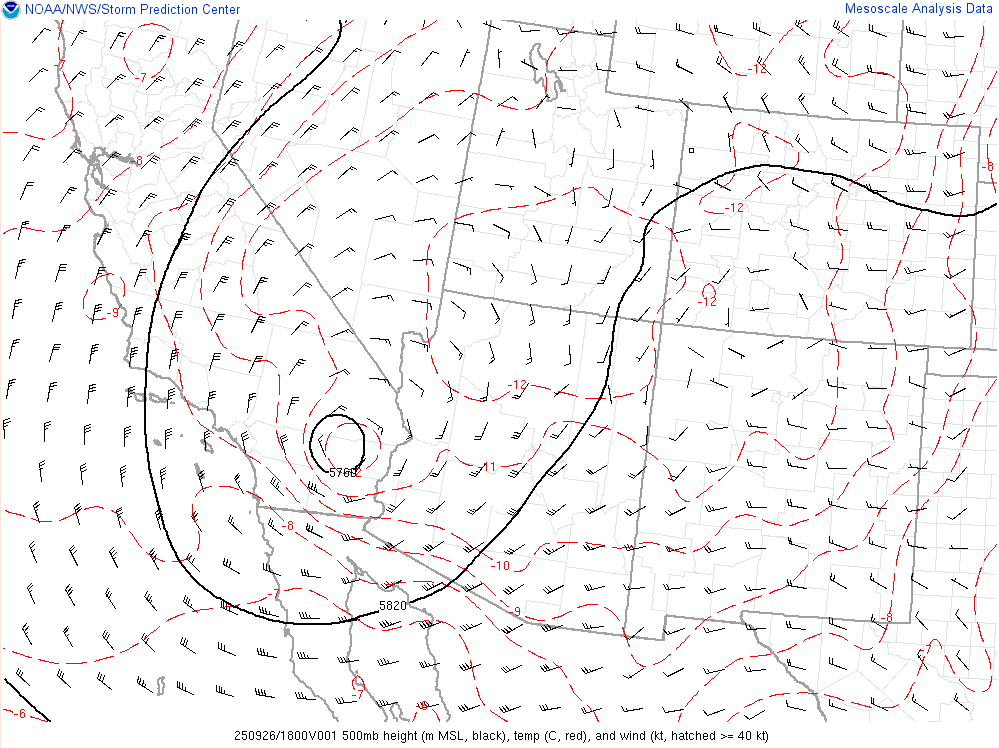 Fig. 22: 500 mb heights, temperature, and winds at 11 AM MST Sep 26th, 2025