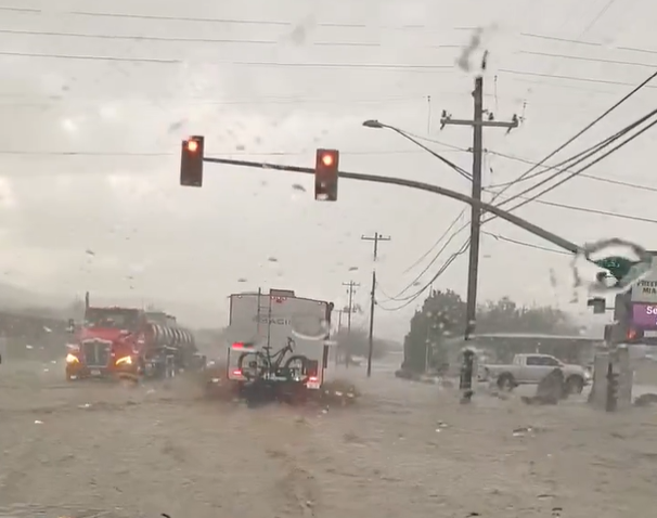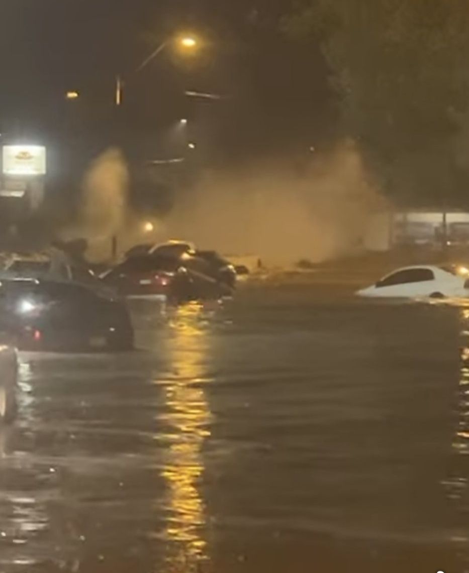 Fig. 4-5: Images of the flash flooding in Miami, AZ. Left image: Flooding along US-60 and New Street (@Debbie Swap on X); Right Image: Flooding along Adonis Avenue (Miami Memorial Library Page on Facebook).