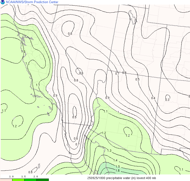 Fig. 19: Animation loop of the Precipitable Water Values between 11 AM MST Sep 25th and 5 PM MST Sep 27th, 2025