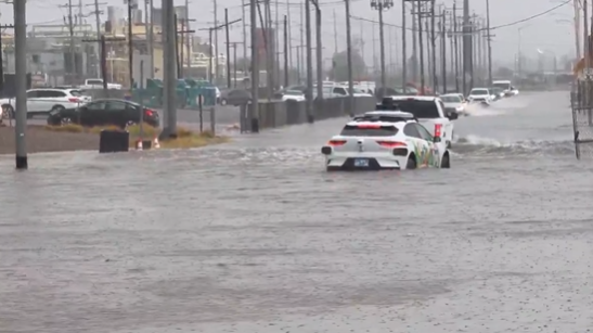 Fig. 9-10: Images of the flooding in Phoenix. Left image: Flooding near Sky Harbor International Airport by 32nd street and Washington with Waymo Taxi Car stuck in the floodwater (@dannybavaro on X); Right image: Cars stuck on the on-ramp to I-10 from Buckeye Rd (ADOT).