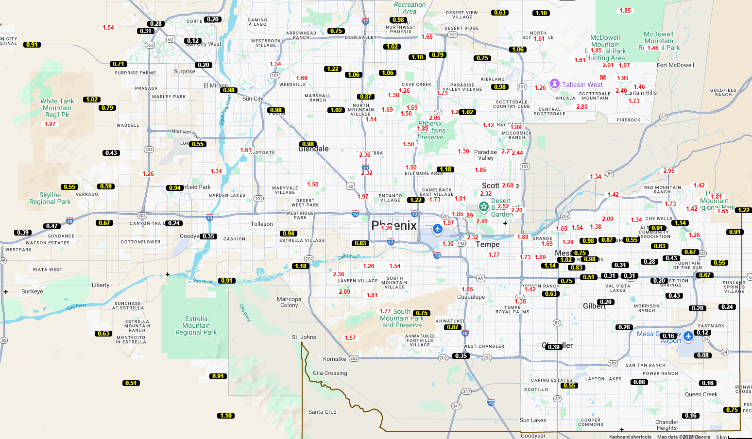 Fig. 13: Rainfall totals on Sep 26th, 2025 courtesy of Flood Control District of Maricopa County (Click on image for better resolution)