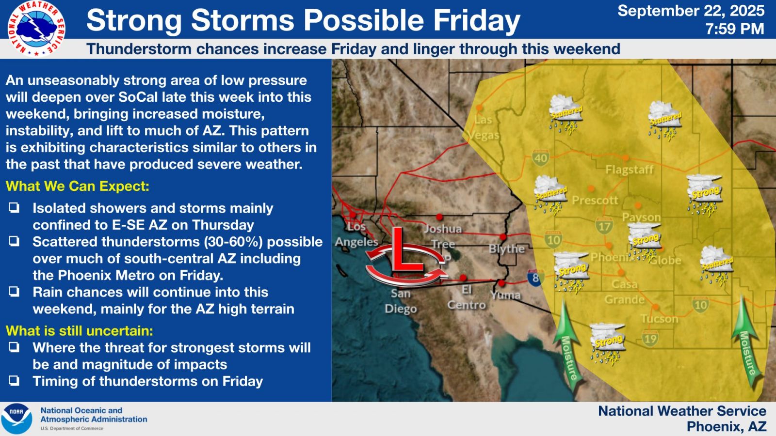 Fig. 23: Weather story graphic published during the evening hours on Sep 22nd, 2025 highlighting the potential for strong thunderstorms later in the week.